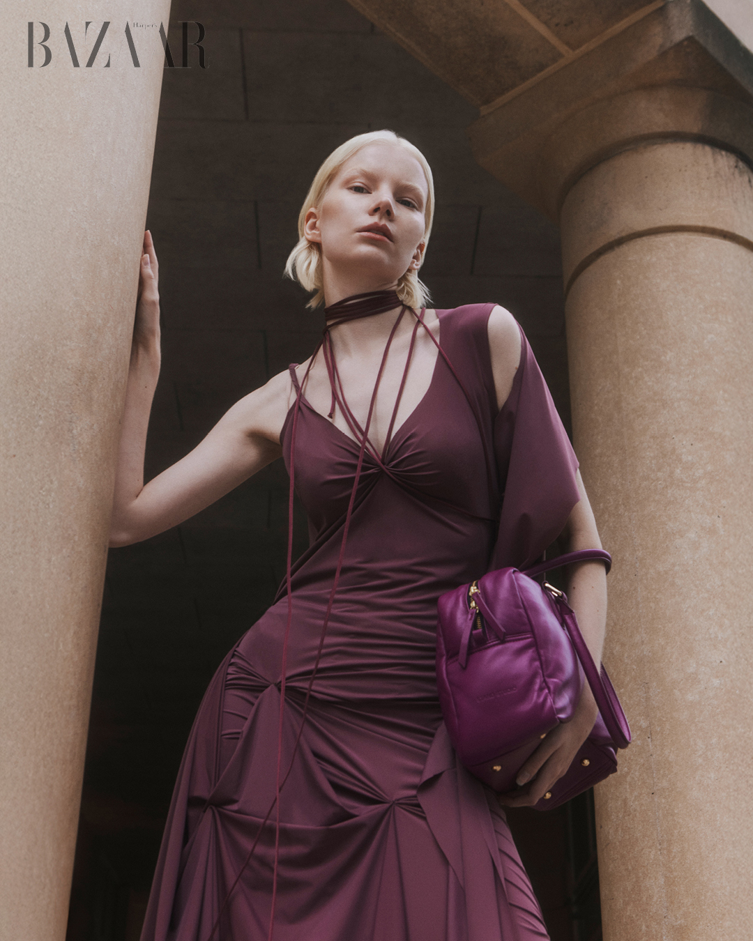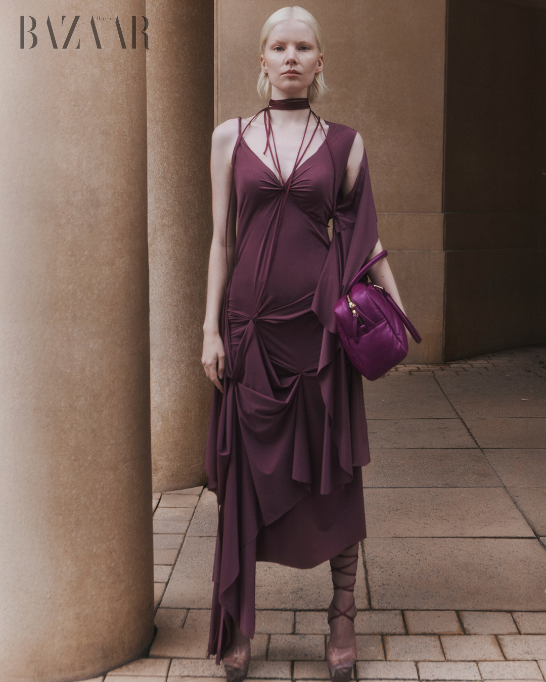 Dress: Julia Weström. Bag: Stand Studio. Shoes and stockings: Stylist’s archive.