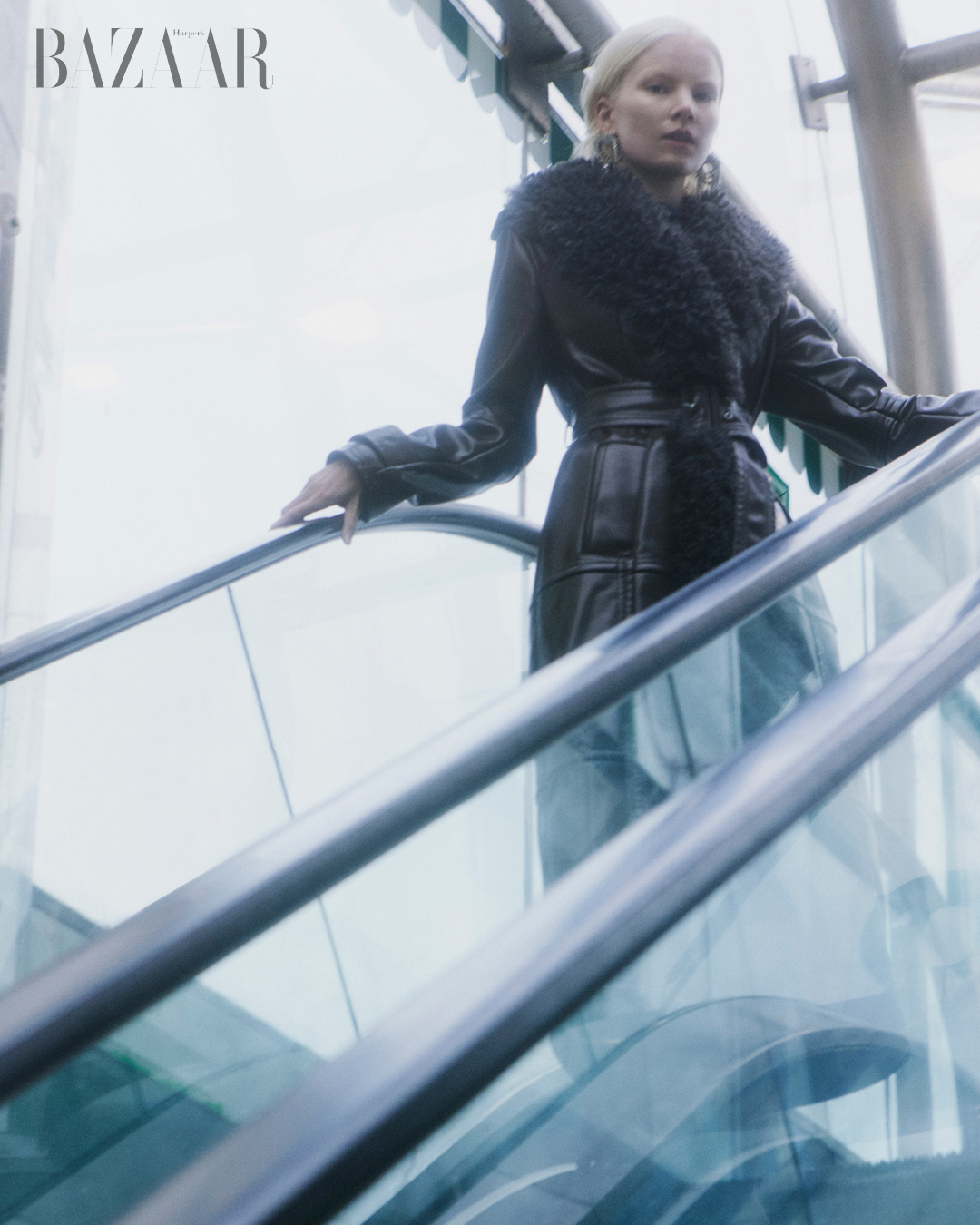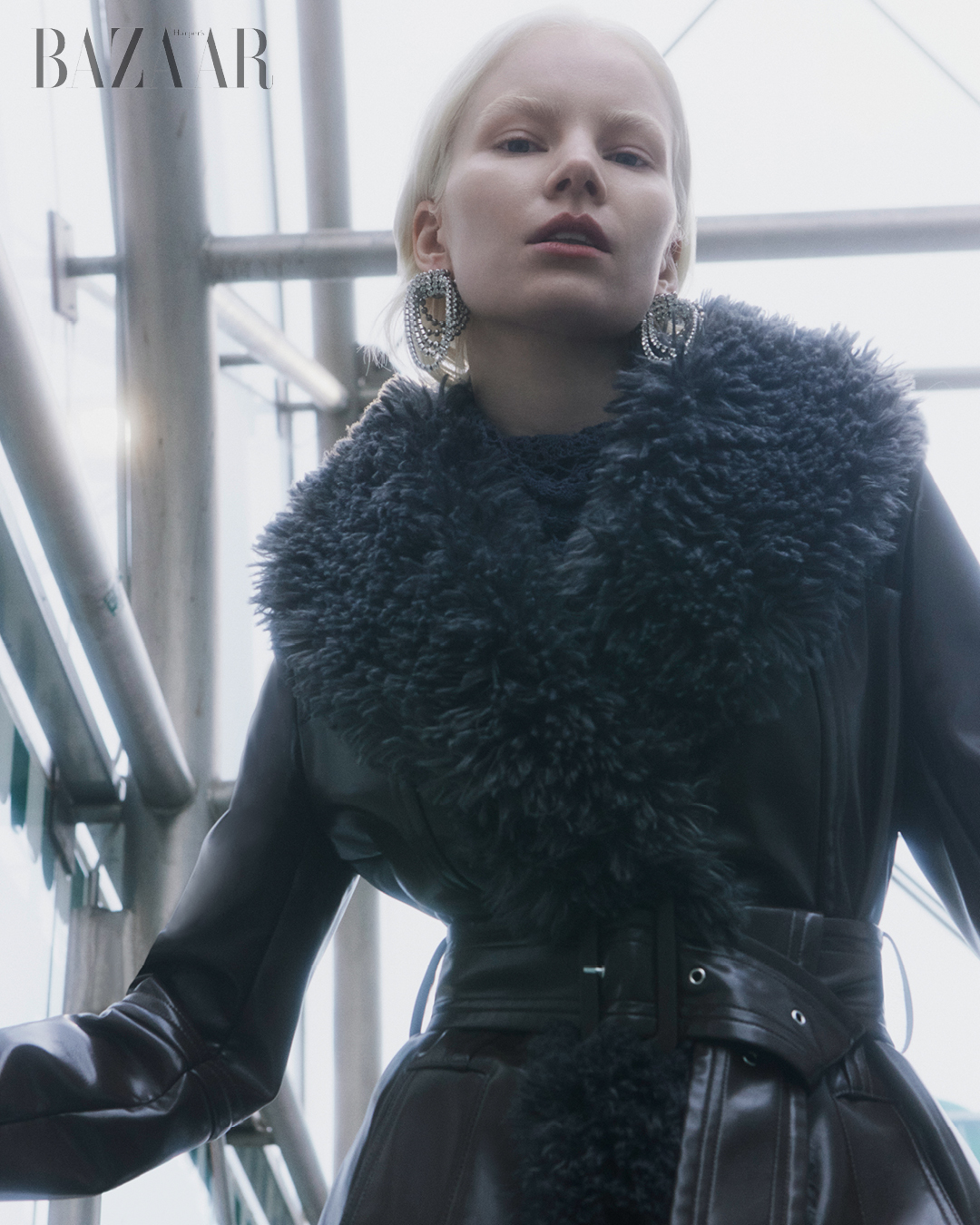 Coat: Stand Studio. Earrings: Stylist’s archive.