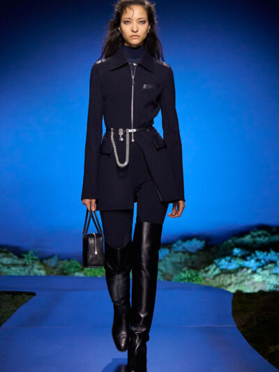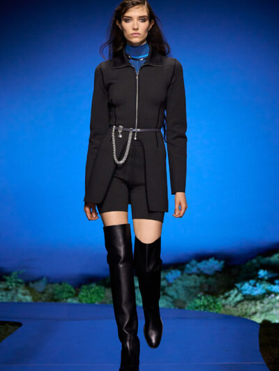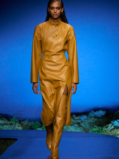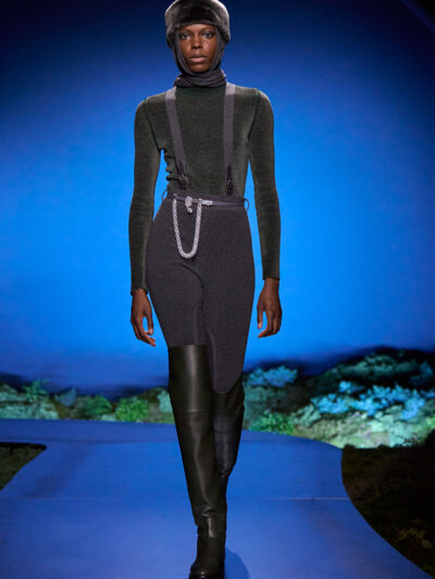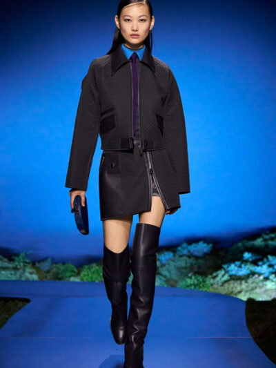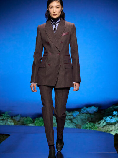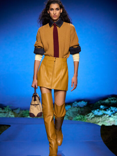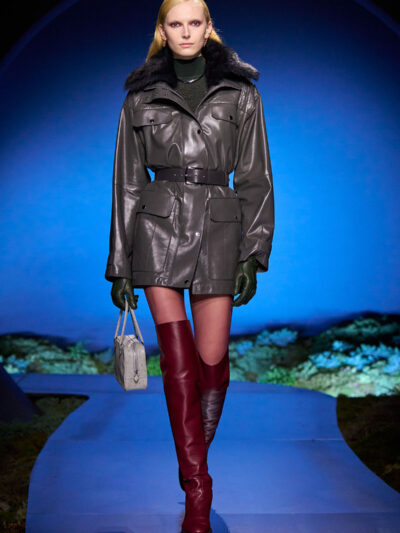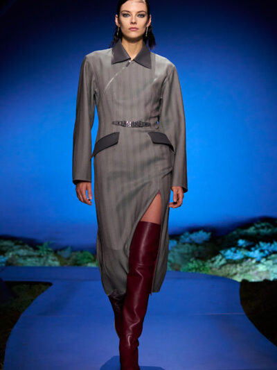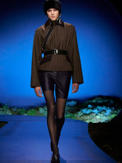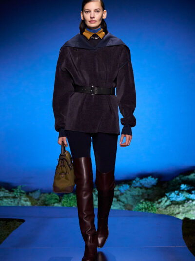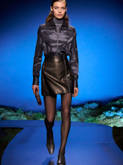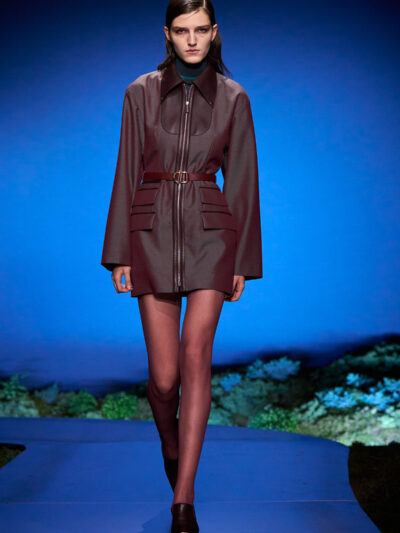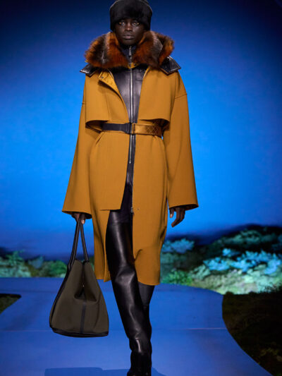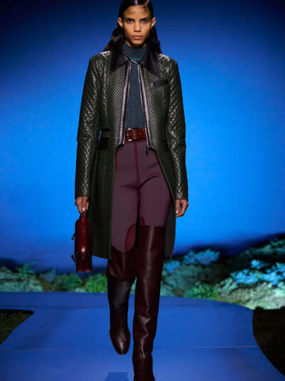Cho bộ sưu tập thời trang nữ của Hermès mùa Thu Đông 2026, Nadège Vanhee-Cybulski muốn khám phá những khoảnh khắc ngắn ngủi giữa ngày và đêm, khi bóng tối hình thành, màu sắc thay đổi, và mọi thứ không còn mang hình dáng của ban ngày. Vì vậy, bà tái hiện một khung cảnh lúc chạng vạng ngay bên trong tòa nhà Garde Républicaine, nơi các khách mời tìm chỗ ngồi đặt quanh sàn runway chạy vòng vèo như một mê cung giữa các thảm rêu xanh. Không gian huyền bí như một khung cảnh từ chuyện cố tích.