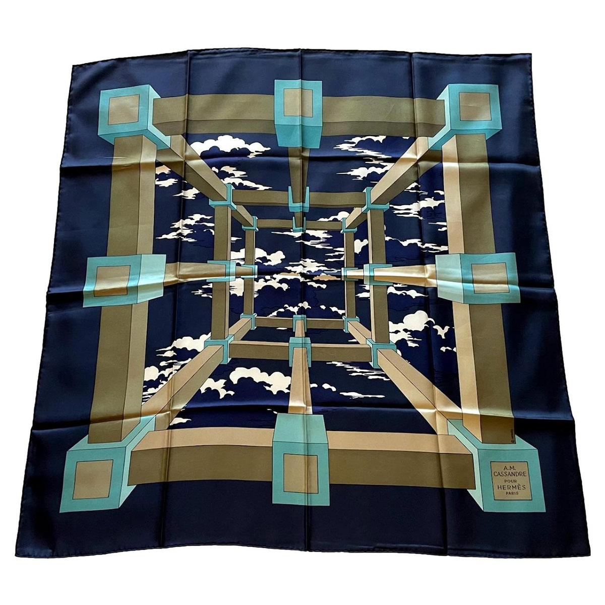 Chiếc khăn lụa Perspective của Hermès được thiết kế năm 1951. Họa tiết theo phong cách mise en abyme. Ảnh: Joli Closet