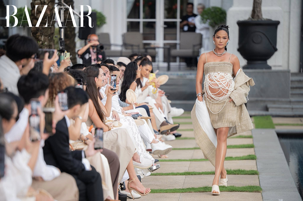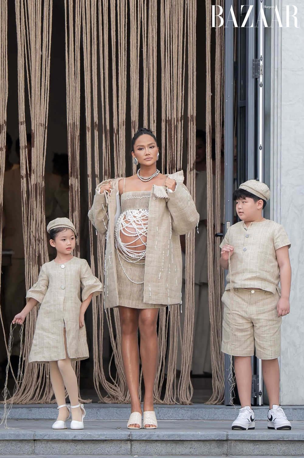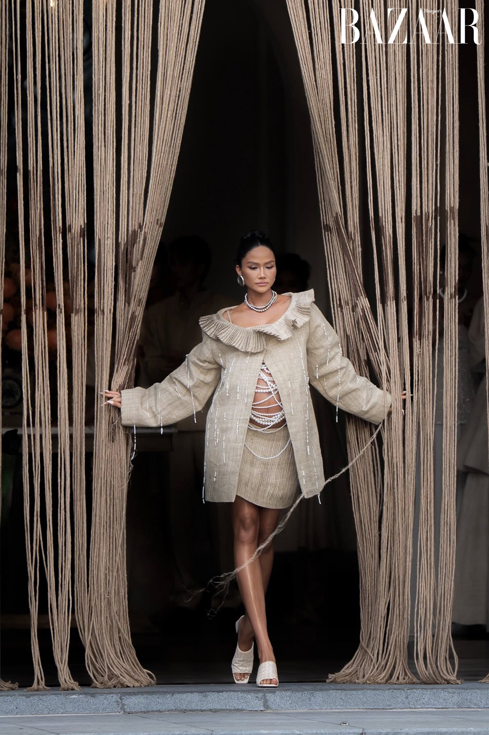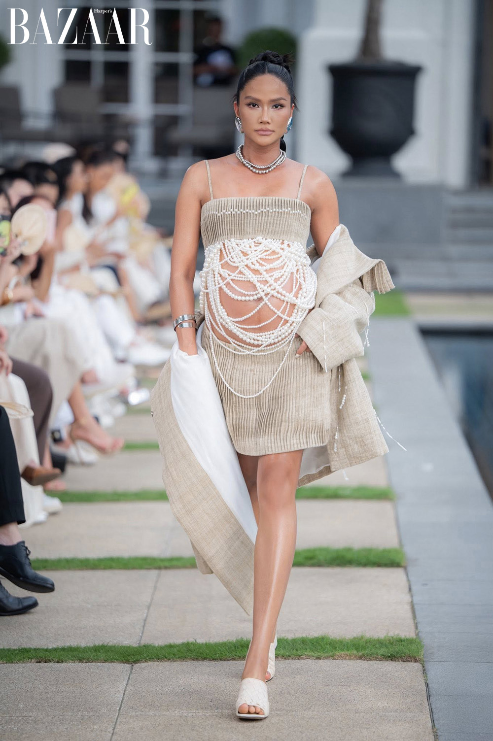 Khán giả đã trầm trồ khi thấy Hoa hậu H’Hen Niê để lộ bụng bầu trong bộ cánh bằng vải gai dầu kết ngọc trai, sải bước đầy mạnh mẽ trên đôi giày cao gót trong một show diễn thời trang có sàn catwalk là thảm đỏ xen lẫn đá lát cuội.