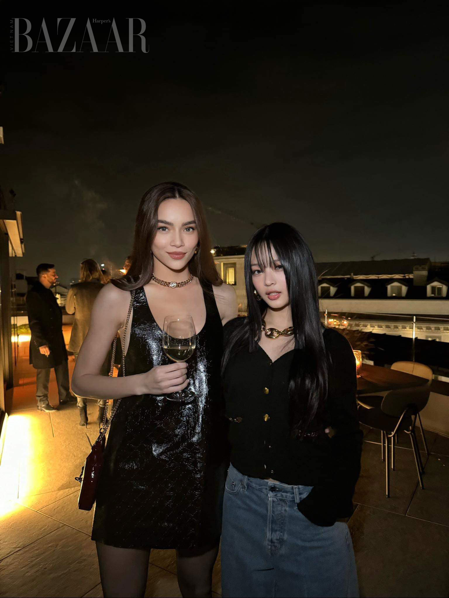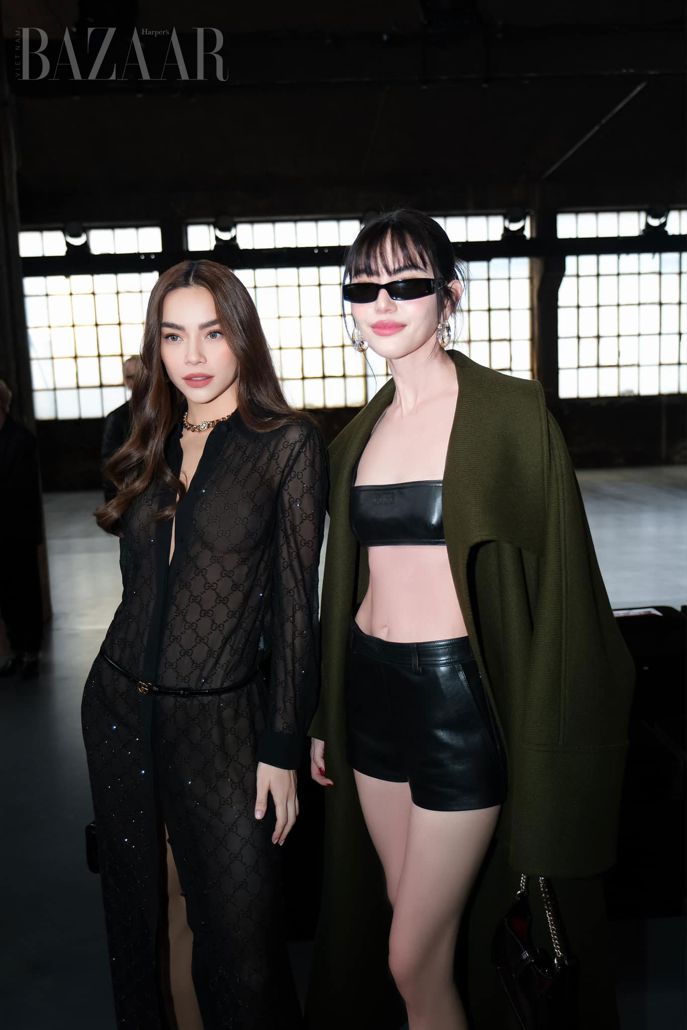 Khoảnh khắc của cả hai đã khiến giới mộ điệu thời trang Việt Nam phát sốt. Đặc biệt khi cả hai lên đồ có phần đồng điệu. Hồ Ngọc Hà mặc váy mini màu đen dập họa tiết Guccissima, đeo vòng cổ monogram Gucci tông vàng đồng. Hanni mặc áo màu đen với hàng nút vàng và cũng đeo vòng cổ Gucci Marina tông vàng.