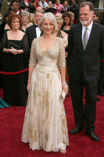Helen Mirren mặc trang phục của Christian Lacroix khi giành giải Nữ diễn viên chính xuất sắc nhất năm 2007.