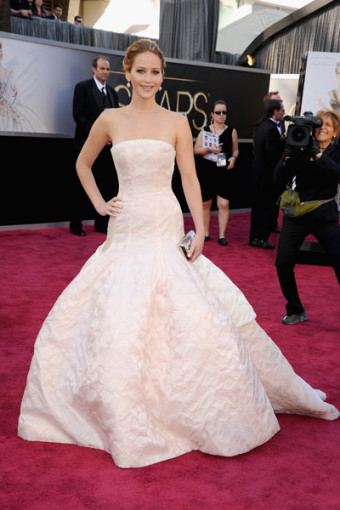Jennifer Lawrence diện trang phục của Dior khi nhận giải Nữ diễn viên chính xuất sắc nhất năm 2013.