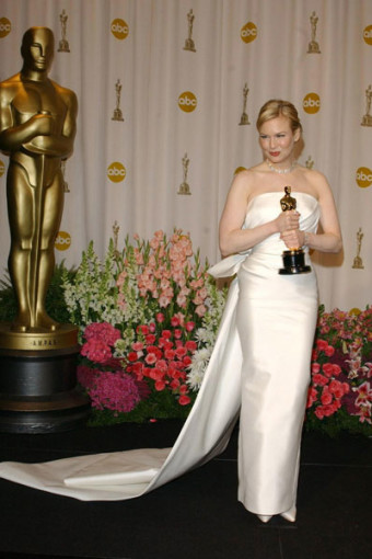 Catherine Zeta-Jones mặc trang phục của nhà mốt Versace khi giành giải Nữ diễn viên phụ xuất sắc nhất năm 2003.