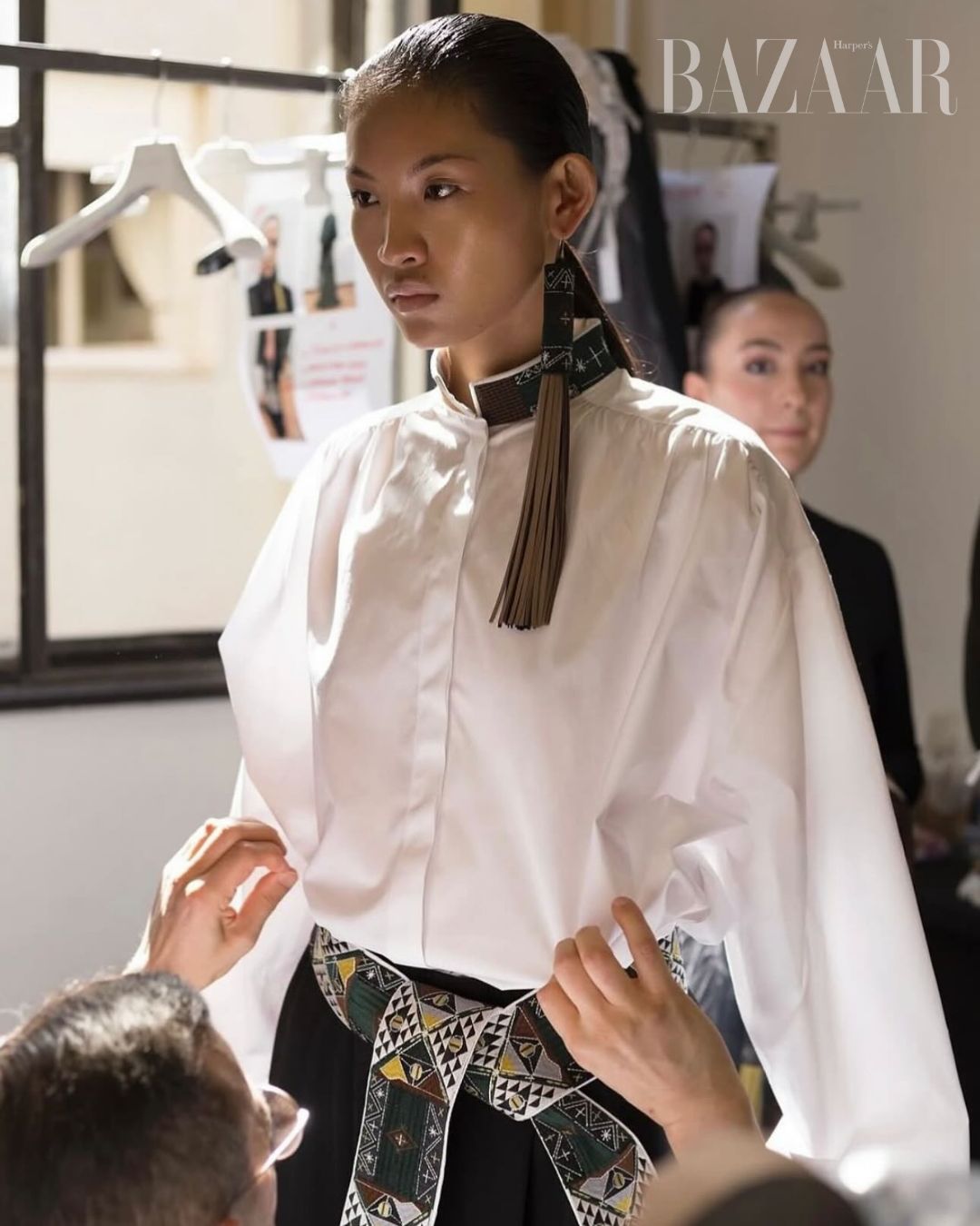 Huỳnh Tú Anh trong hậu trường của show diễn thương hiệu Calcaterra