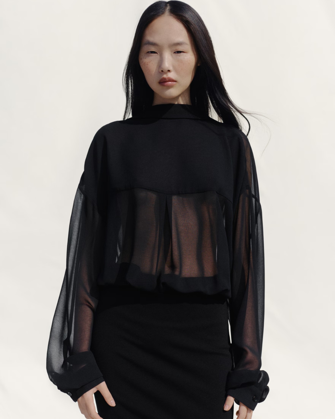 Cũng trong khung cảnh mùa xuân lãng mạn, hai biểu tượng phong cách nhà BLACKPINK không chọn những màu sắc nhẹ nhàng mà ưu ái cho sắc đen sang trọng. Họ khéo léo chọn chất liệu xuyên thấu có những gợn sóng nhẹ nhàng trên trang phục để làm nên diện mạo “nàng xuân” mềm mại, không một nỗi lo bị “cộng tuổi” hay khiến tổng thể trông nặng nề.