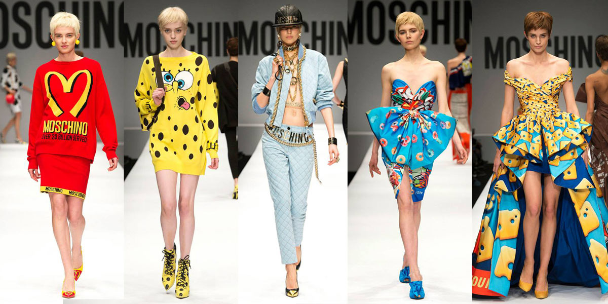 Moschino là di sản của Franco Moschino, người thành lập thương hiệu vào năm 1983, nổi tiếng với các thiết kế ảnh hưởng bởi cảm hứng pop art đầy sự châm biếm và hài hước. Sau khi Franco Moschino qua đời vào năm 1994, quyền dẫn dắt Moschino được trao cho Rossella Jardini. Từ đây, thương hiệu Moschino được biết đến nhiều hơn với phong cách thời trang lập dị, trở thành nơi cung cấp phục trang yêu thích của các biểu tượng nhạc pop như Madonna, Lady Gaga. Jeremy Scott gia nhập vào năm 2013.
