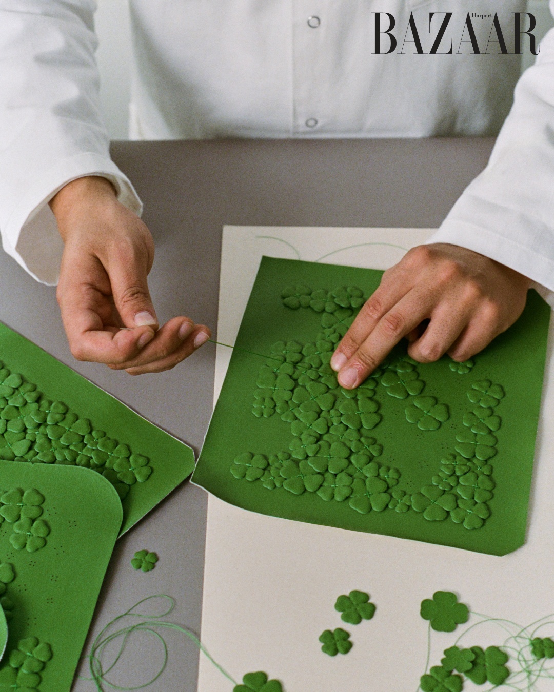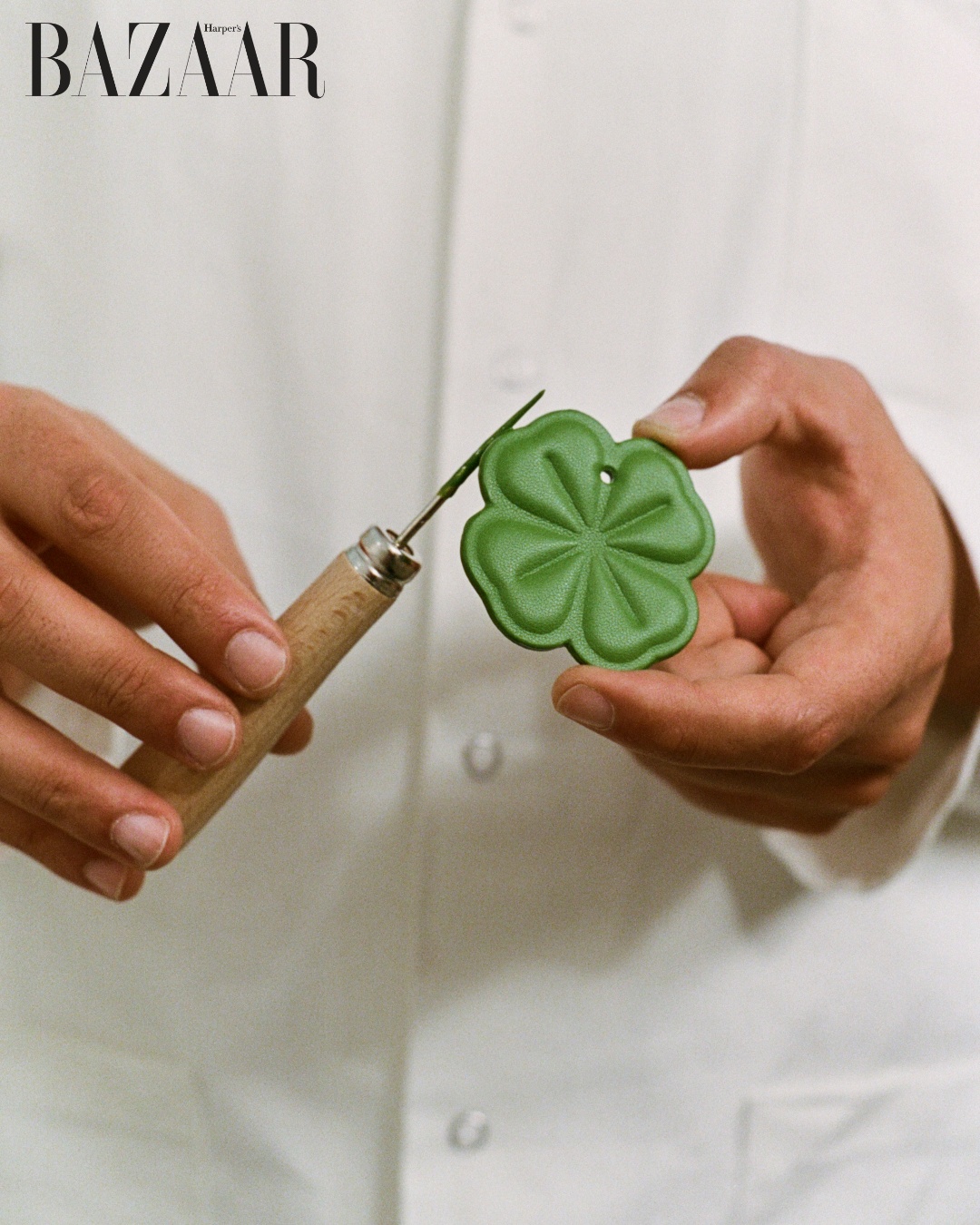 Về mặt chế tác, Lady Dior Clover là một bài toán kỹ thuật phức tạp. Mỗi chiếc túi được điểm xuyết bằng những lá cỏ bốn lá ép nóng, sau đó thêu thủ công từng chi tiết một. Quá trình này đòi hỏi độ chính xác gần như tuyệt đối, bởi chỉ một sai lệch nhỏ cũng có thể phá vỡ bố cục tổng thể. Bên cạnh đó, charm nhỏ mang hình dáng bùa hộ mệnh với chữ D-I-O-R quen thuộc tiếp tục nhấn mạnh tinh thần couture thủ công bởi mỗi chi tiết đều có lý do tồn tại.