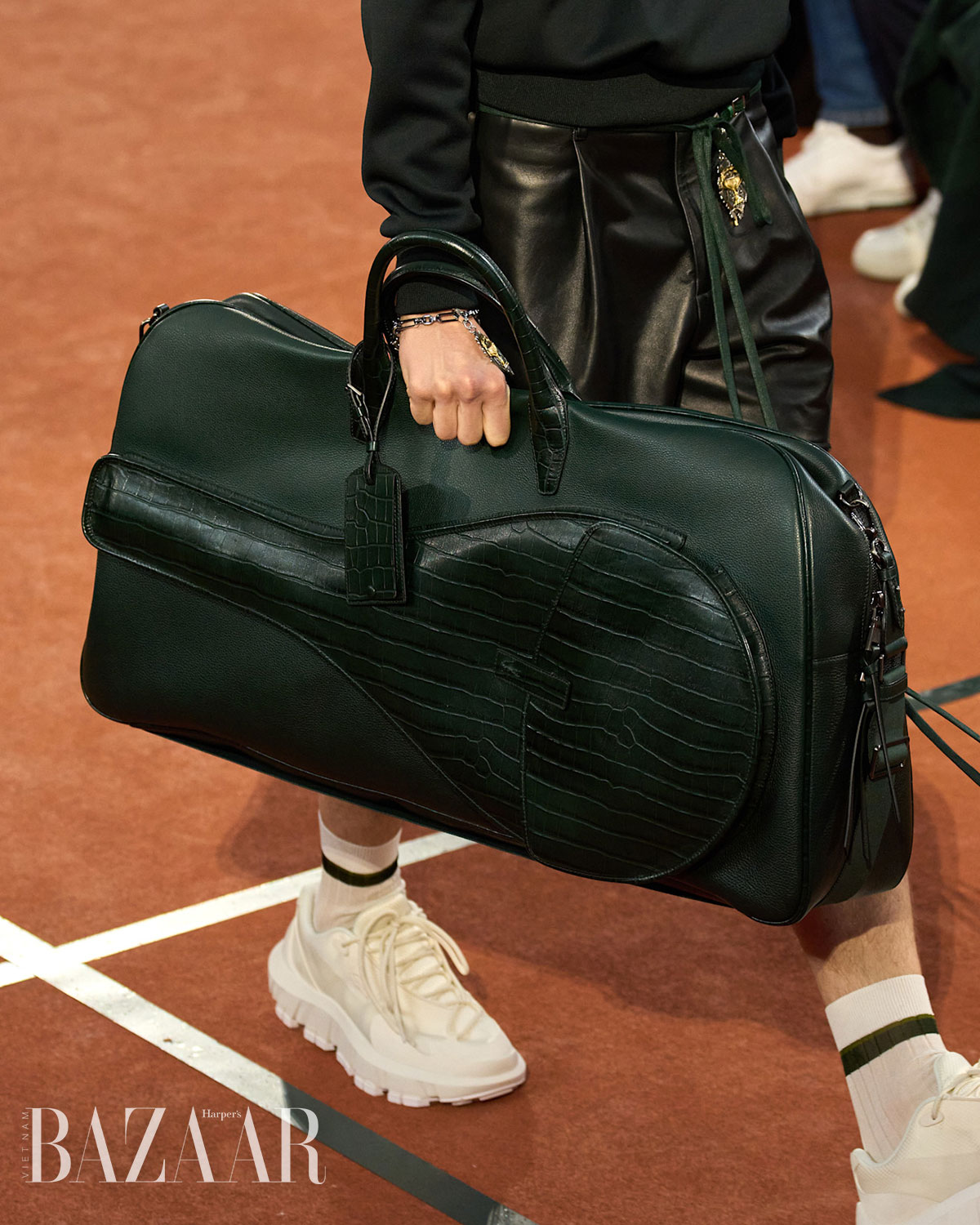 Xuyên suốt bộ sưu tập là những điểm nhấn thể hiện nỗ lực xây dựng một hình ảnh sang trọng hơn cho Lacoste. Chiếc ghim cài áo hình chú cá sấu, được thực hiện với hình khối 3D nổi bật và bóng bẩy. Giày thể thao lai căng hình bóng giày cao gót. Túi xách weekender cho những chuyến đi kết hợp ngăn đựng vợt chơi tennis.