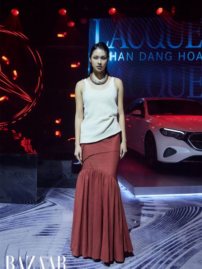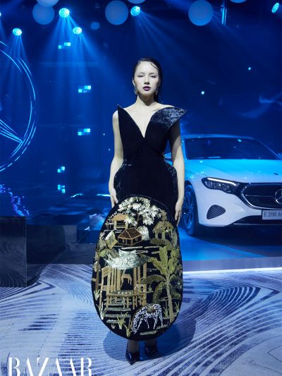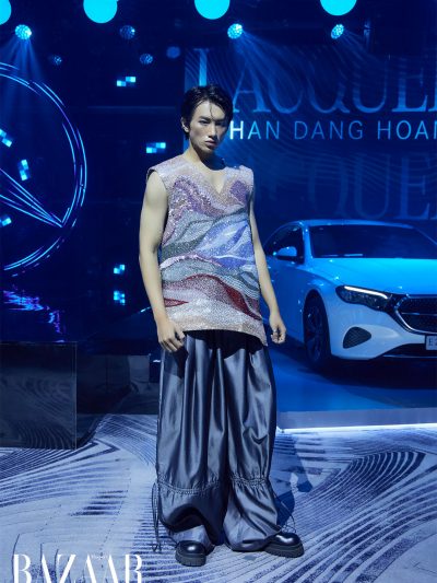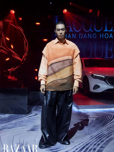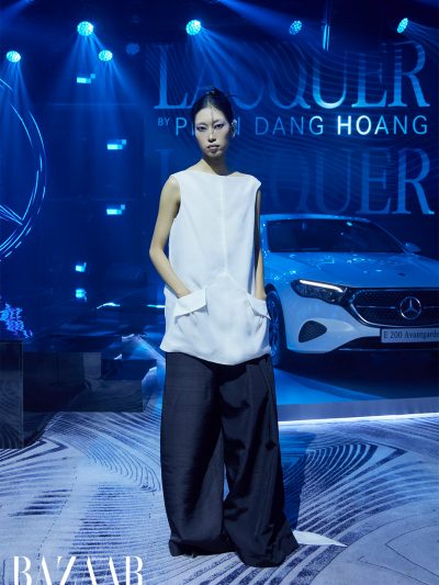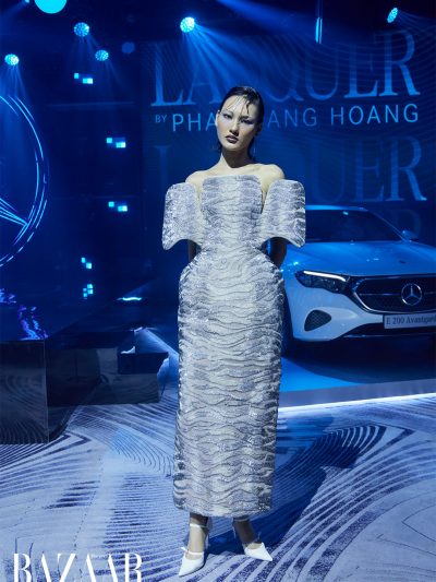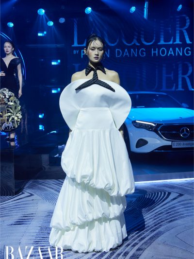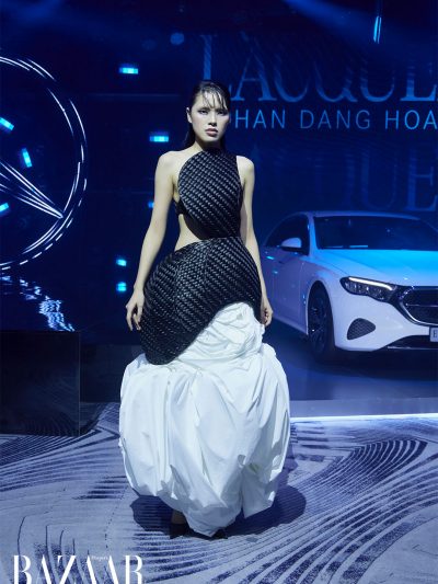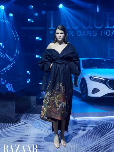 Trong không gian sự kiện “Ra mắt và Triển lãm Mercedes-Benz E-Class” diễn ra ngày 16 và 17/10 tại khách sạn JW Marriott Hà Nội, dưới ánh sáng sang trọng của những mẫu xe thế hệ mới, NTK Phan Đăng Hoàng trình làng bộ sưu tập “Lacquer” hợp tác cùng Harper’s Bazaar Vietnam, lấy cảm hứng từ nghệ thuật sơn mài Việt và tác phẩm của danh họa Nguyễn Gia Trí.