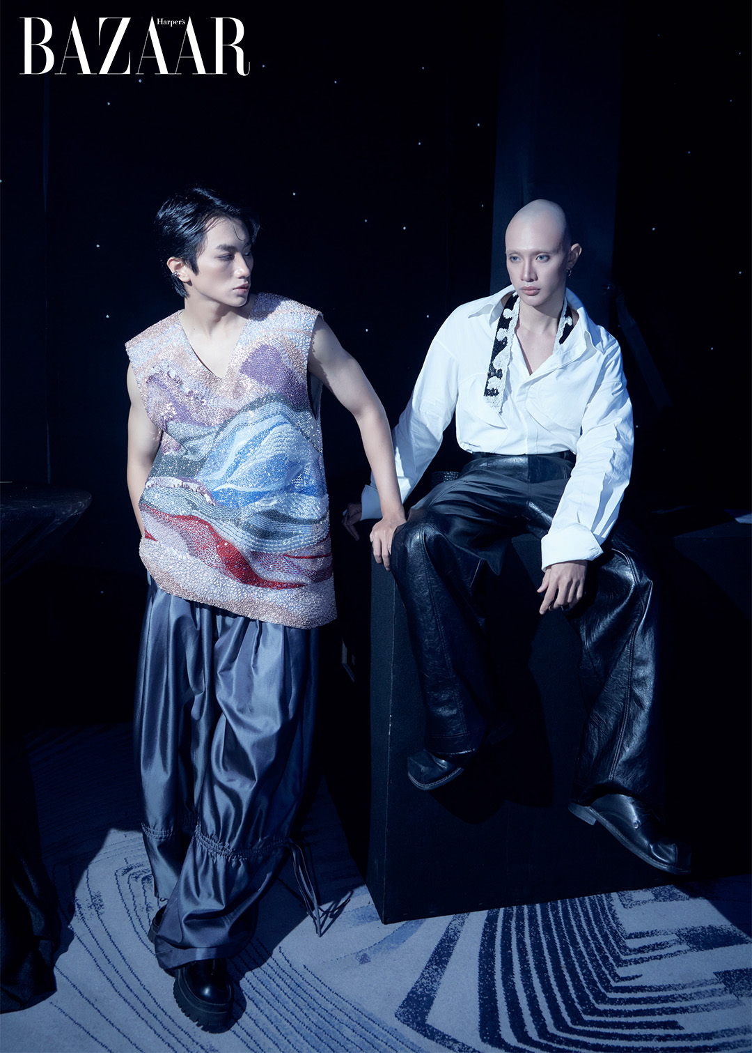 Thương hiệu Phan Đăng Hoàng giới thiệu thiết kế dành cho cả nam và nữ, khẳng định vẻ đẹp và tay nghề thủ công không bị giới hạn bởi giới tính hay thời gian. Giữa ánh phản chiếu của lụa, da và kim loại, bộ sưu tập trở thành một bài thơ được viết bằng bàn tay người thợ, mỗi đường nét là một nhịp thở, mỗi lớp vải là một tầng cảm xúc.