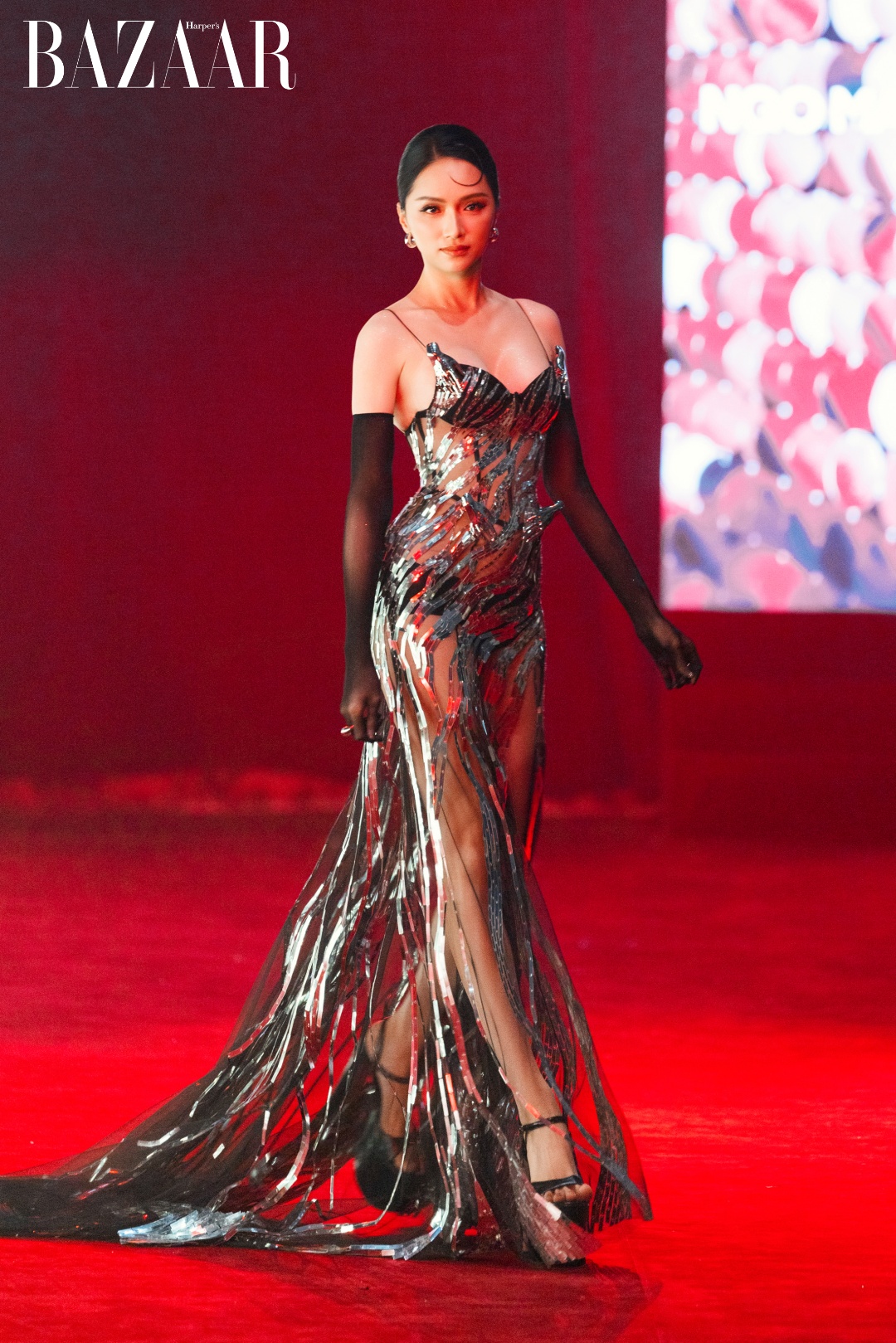 Với vai trò vedette kết màn, Hương Giang xuất hiện với thần thái sắc sảo và cuốn hút. Đây cũng là show thời trang đầu tiên của Hương Giang sau khi trở về từ Miss Universe 2025, mang đến một khoảnh khắc bùng nổ cảm xúc trên sàn diễn.