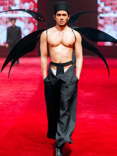 Lấy cảm hứng từ tác phẩm hội họa kinh điển The Fallen Angel – L’Ange déchu (1847) của danh họa người Pháp Alexandre Cabanel, bộ sưu tập Le Beau 4 của NTK Ngô Mạnh Đông Đông tái hiện hình ảnh Lucifer, thiên thần bị trục xuất khỏi thiên đàng, mang vẻ đẹp bi tráng, cô độc và đầy mâu thuẫn nội tâm. Trong bức tranh gốc, Lucifer hiện lên như một chàng trai trẻ hoàn mỹ, đôi cánh còn sót lại ánh sáng thiên đường, ánh mắt giận dữ pha lẫn nước mắt – biểu trưng cho sự sa ngã, phản kháng và nỗi đau của một linh hồn từng thuộc về ánh sáng.