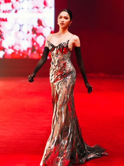 Với vai trò vedette kết màn, Hương Giang xuất hiện với thần thái sắc sảo và cuốn hút. Đây cũng là show thời trang đầu tiên của Hương Giang sau khi trở về từ Miss Universe 2025, mang đến một khoảnh khắc bùng nổ cảm xúc trên sàn diễn.