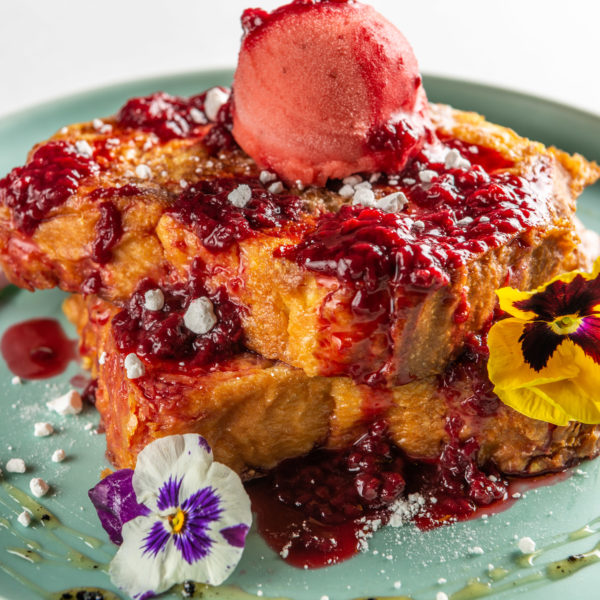 Bánh mì nướng Brioche French Toast – ăn kèm với mứt dâu tằm, mật ong hương truffle, và kem tươi