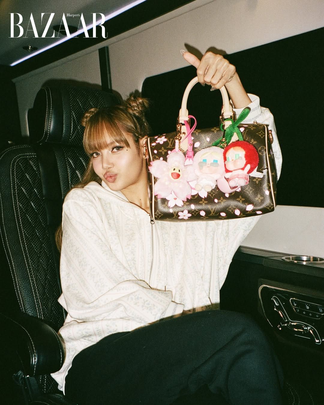 Những ngày hè cuối cùng trước khi tái xuất cùng BLACKPINK, Lisa vừa nghỉ ngơi, vừa tranh thủ làm điều ý nghĩa cho fan. Cô tổ chức chợ phiên tại Hàn, bán những món đồ từng sở hữu vì mục đích thiện nguyện. Sau đó cô đến Nhật tận hưởng khoảng thời gian nghỉ ngơi, mua sắm, ăn uống thỏa thuê. Người bạn đồng hành không rời cô nửa bước? Chiếc ba lô và túi xách họa tiết anh đào – mẫu Cerise/Cherry từ BST Louis Vuitton x Murakami.