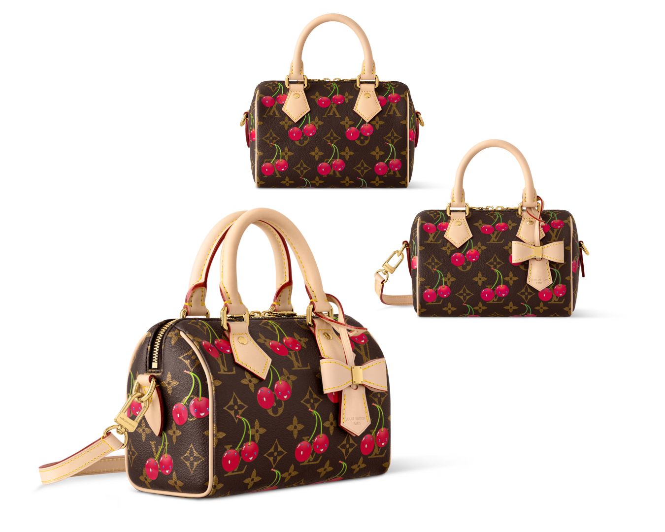 Màn kết hợp trở lại giữa Louis Vuitton và Takashi Murakami sau hai thập kỷ đã làm mới nhiều họa tiết từng xuất hiện ở bộ sưu tập từ những năm 2000. Do đó, không thể thiếu họa tiết các bông hoa anh đào và quả anh đào.