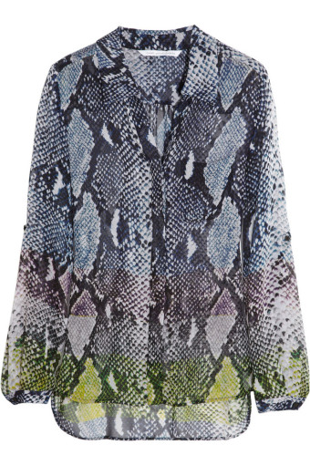 Áo blouse phom rộng in hoa văn da rắn, Diane von Furstenberg