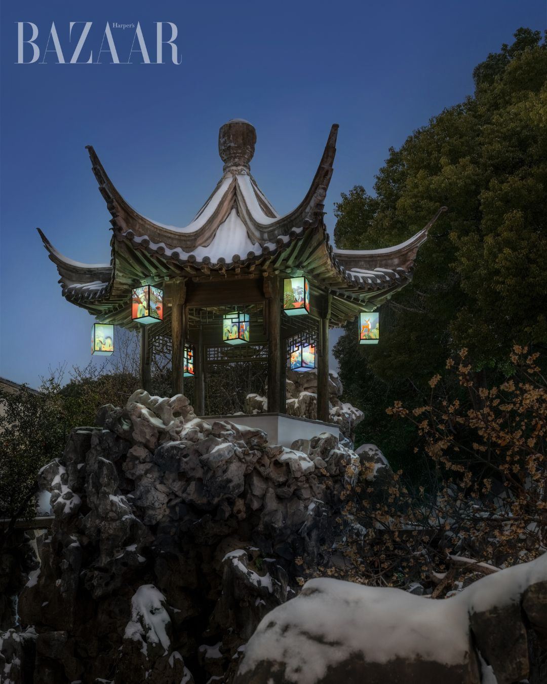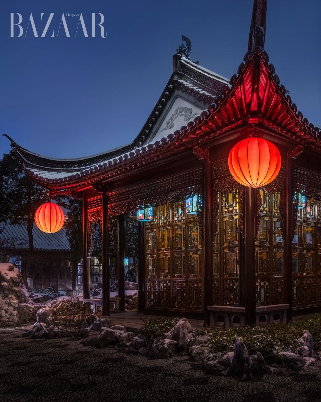 Khi đặt chân vào Ngu Viên, người xem như lạc vào chương tiếp theo của bộ phim ngắn: hệ thống đèn lồng được sắp đặt tinh tế, hài hòa với bố cục và khí chất vốn có của khu vườn cổ, trở thành điểm nhấn nhẹ nhàng để sức sống của câu chuyện đương đại lan tỏa tự nhiên trong không gian mang đậm dấu ấn thời gian.