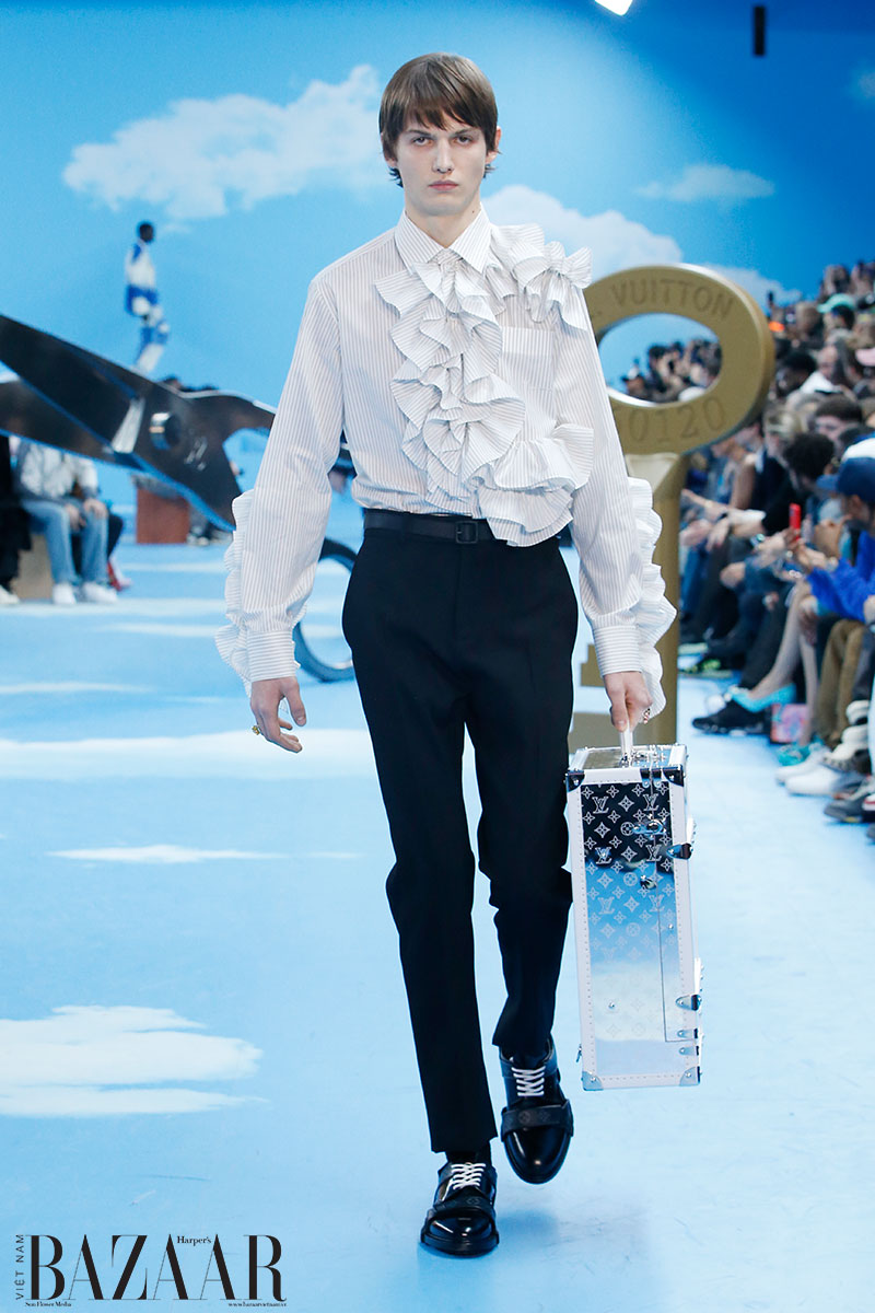 Với bộ sưu tập Thu Đông 2020, Gucci gợi ý những item có phần hơi “nữ nhi” thái quá. May thay, Louis Vuitton lại đem đến sự hồi sinh của những gã trai trẻ một cách rất thanh lịch. Nếu những thiết kế của Alexandro Michele ít nhiều gây hoang mang cho người xem, thì Virgin Abloh có vẻ thích đem đến sự mới lạ trong yên tĩnh hơn.