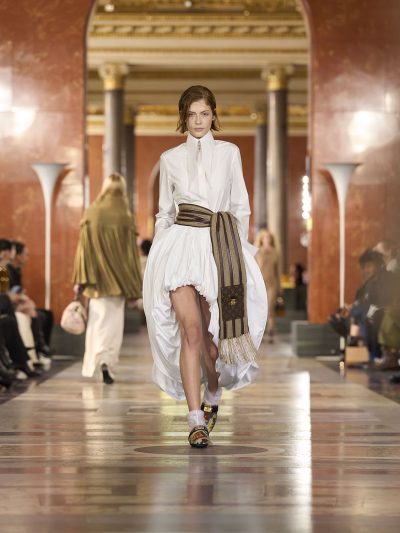 Mùa Xuân Hè 2026 không phải là lần đầu tiên Nicolas Ghesquière đưa show diễn Louis Vuitton đặt bên trong bảo tàng Louvre. Bởi Louvre là bảo tàng nổi tiếng nhất của nước Pháp, là một biểu tượng của lịch sử, nghệ thuật và sức ảnh hưởng của quốc gia này. Cũng như cách Louis Vuitton đã trở thành một trong những thương hiệu thời trang Pháp vang danh thế giới.
