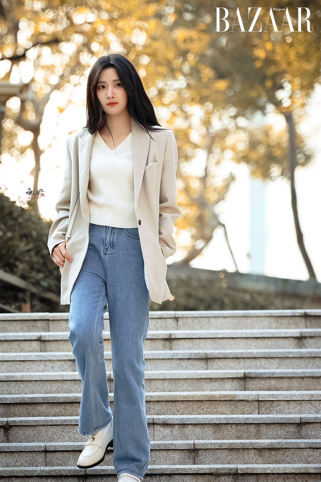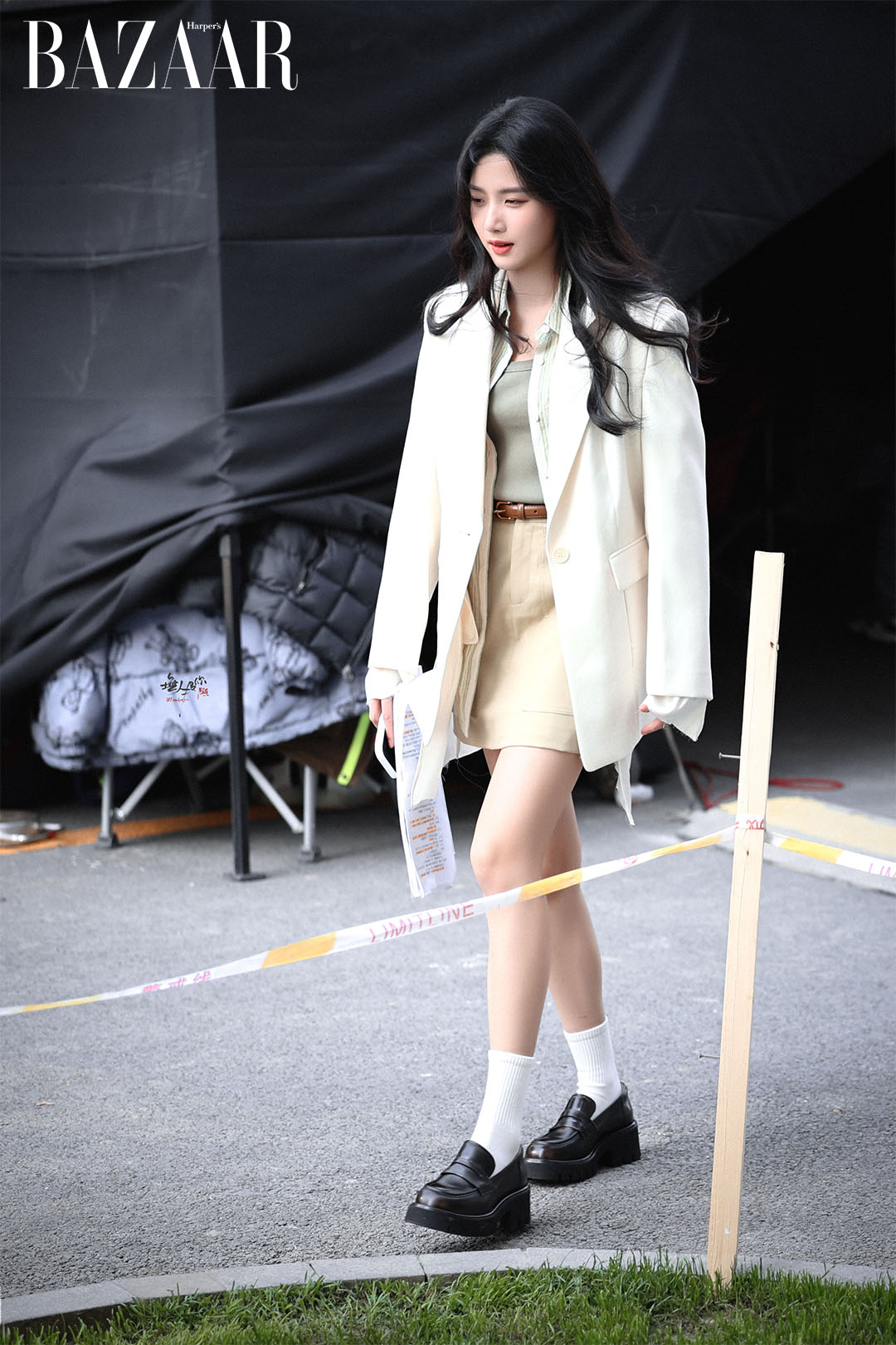 Các mẫu áo blazer Lư Dục Hiểu mặc trong Yết Hí thuộc dạng oversize, to rộng hơn so với áo blazer thông thường và có độ dài phủ mông. Kiểu áo này có thể phối hợp đẹp với cả quần lẫn chân váy ngắn. Tuy nhiên, độ dài phủ mông của áo blazer có thể khiến những bạn gái dưới 1m60 trông bị thấp, nên bạn cần phối với giày cao gót.