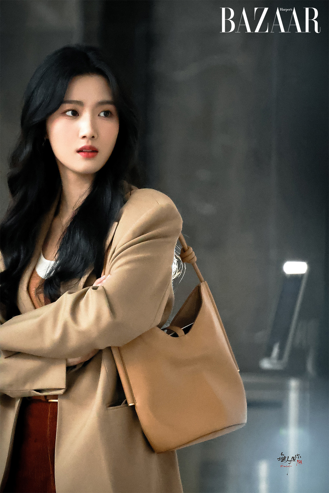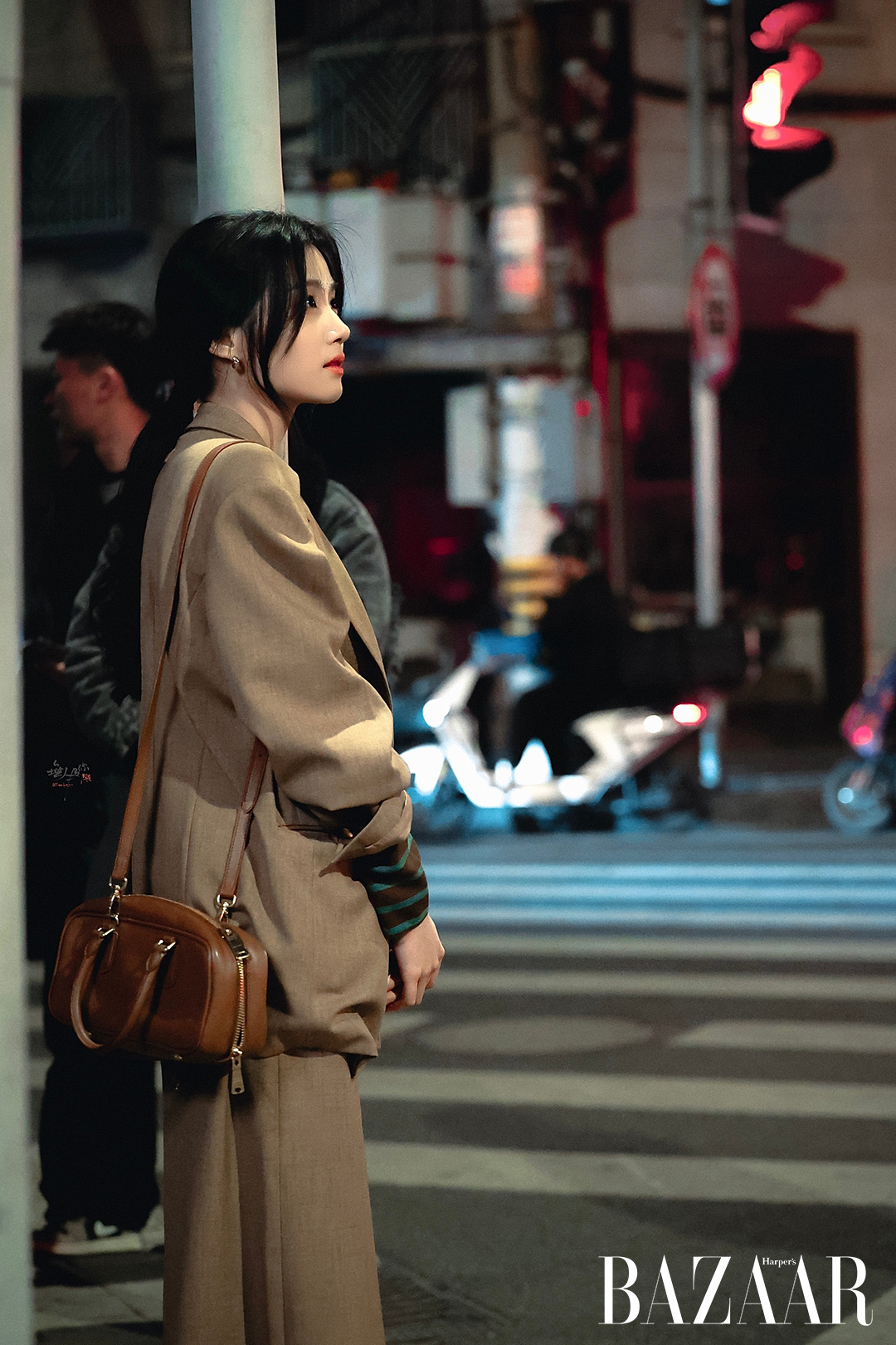 Hoặc ở outfit màu nâu, chiếc túi xách Miu Miu Arcadie màu Cognac có tone màu sáng bần bật, giúp cho tổng thể outfit hài hoà, vẫn có thể khoe khéo được phụ kiện. Sự thay đổi nhịp nhàng giữa các sắc độ trong set đồ không chỉ thể hiện khả năng mix & match uyển chuyển mà còn khẳng định gu thời trang đa dạng, luôn mới mẻ.