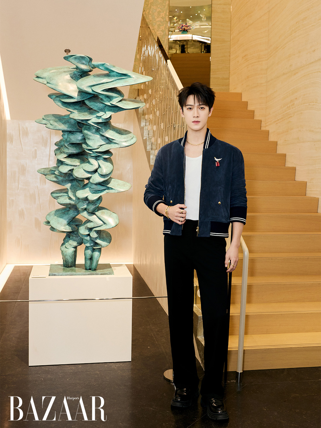 Chiều cùng ngày, nam diễn viên xuất hiện tại cửa hàng Tiffany & Co. ở Tam Lý Đồn, Bắc Kinh. Trang phục nhung tối màu kết hợp cùng trang sức vàng tạo nên tổng thể cổ điển, đủ để các chi tiết kim hoàn trở thành tâm điểm thị giác.