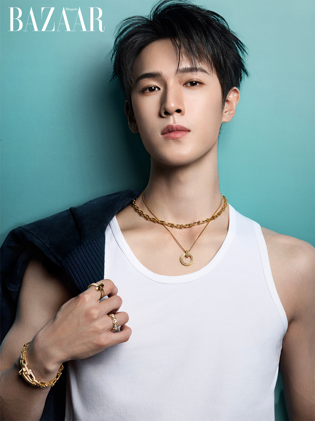 Lý Quân Nhuệ đeo các trang sức fine jewelry kinh điển của Tiffany & Co.: vòng cổ Tiffany Hardwear mắt xích và dây chuyền T1 nạm kim cương, lắc tay Tiffany T1, vòng tay Tiffany Hardwear nạm kim cương, nhẫn Tiffany T1, nhẫn Tiffany Hardwear và nhẫn Sixteen Stones. Ảnh: Weibo @摄影师林奕颖LIM