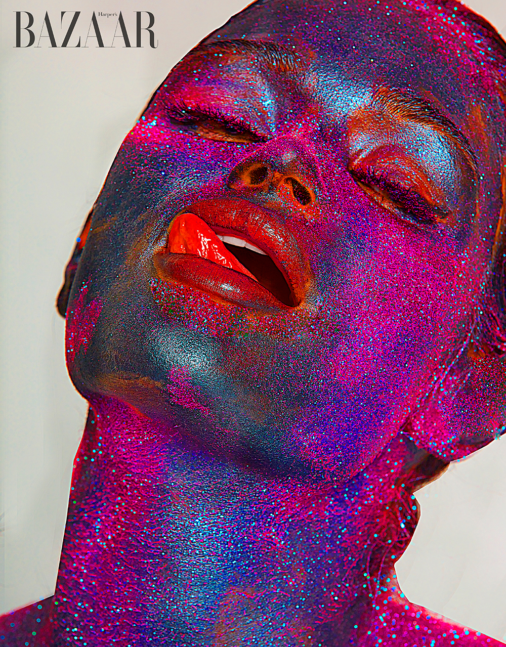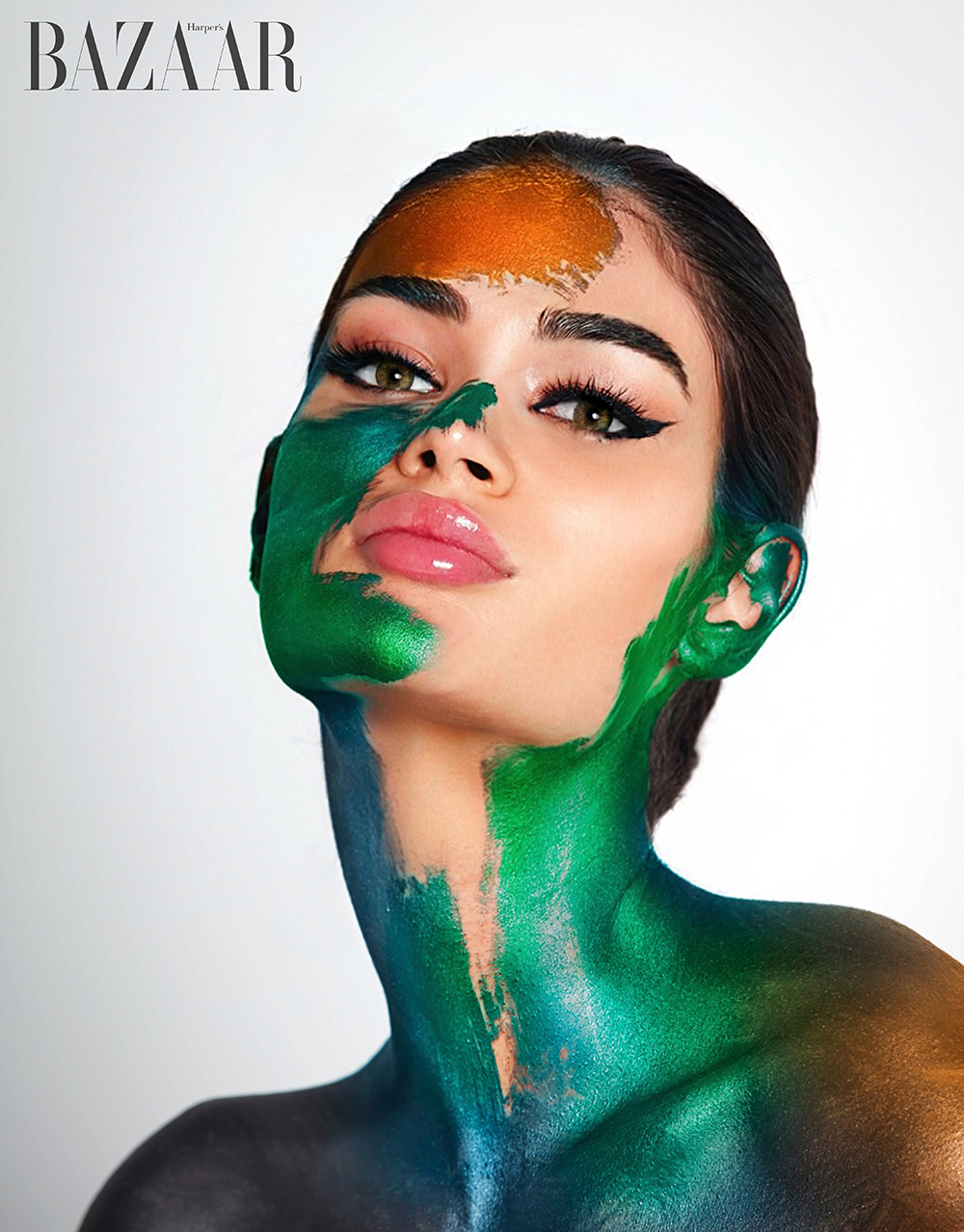 Drawing inspiration from Jackson Pollock’s painting style, makeup artist Lluisa Gash Pey recreates makeup as if they were a painter, applying thick brushstrokes of colors and grays.