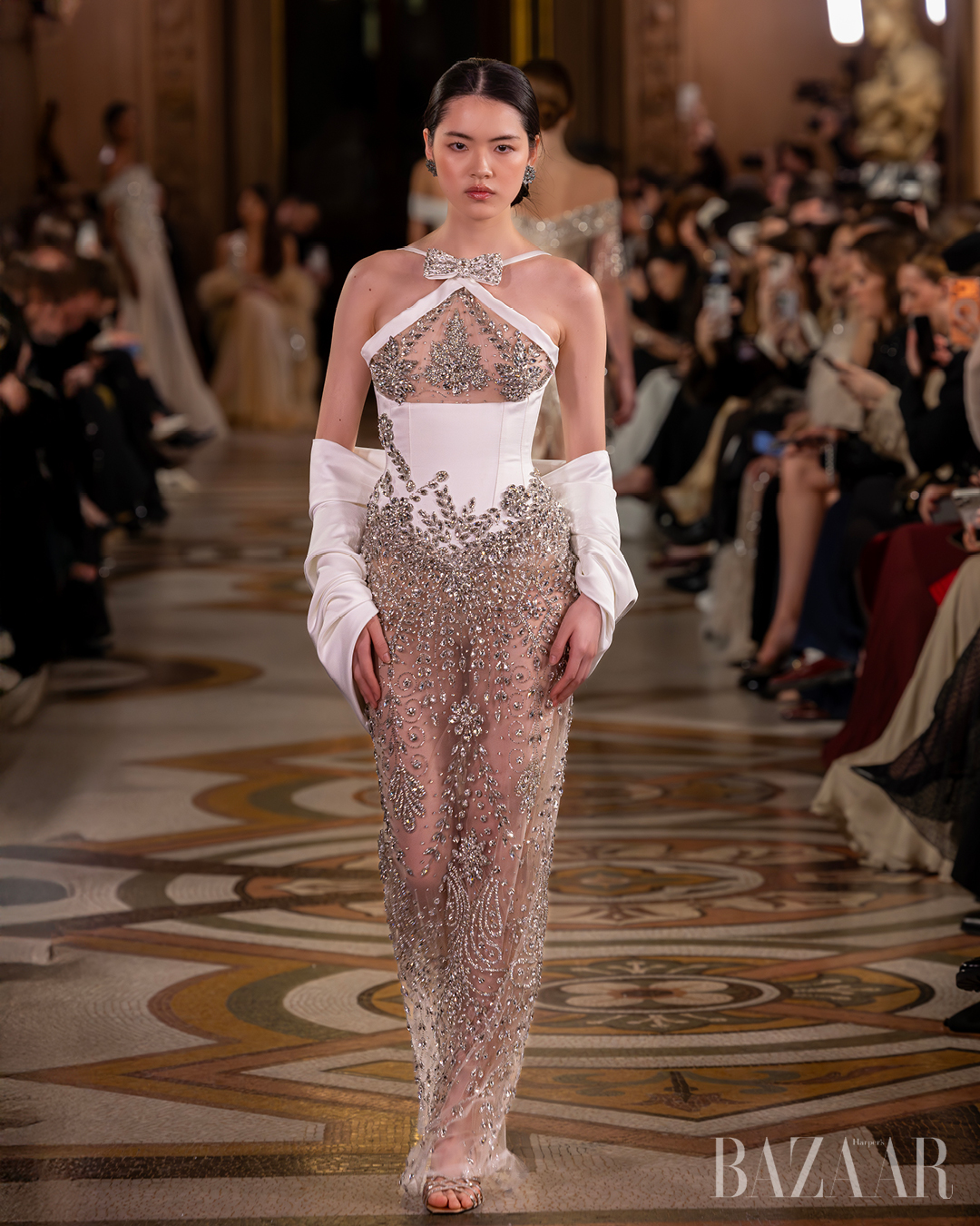 Unveiled in Paris within the elegant setting of Palais Garnier, designer Aleen Sabbagh introduced a collection defined by precision, fluidity, and quiet strength.