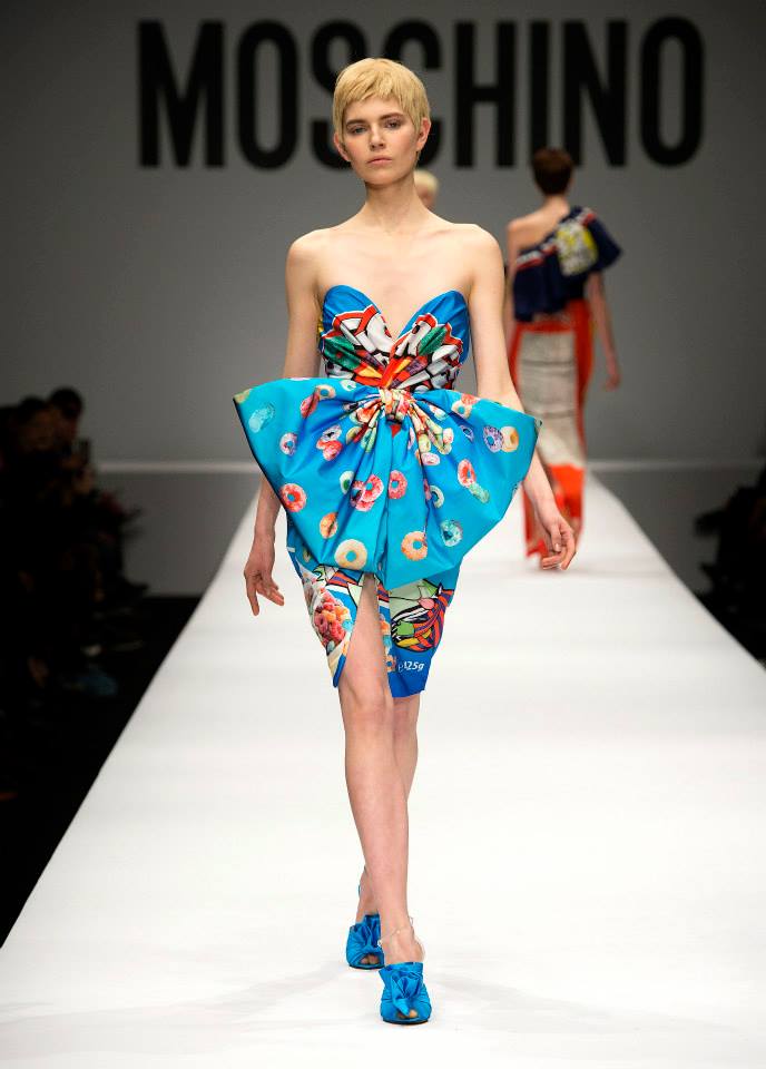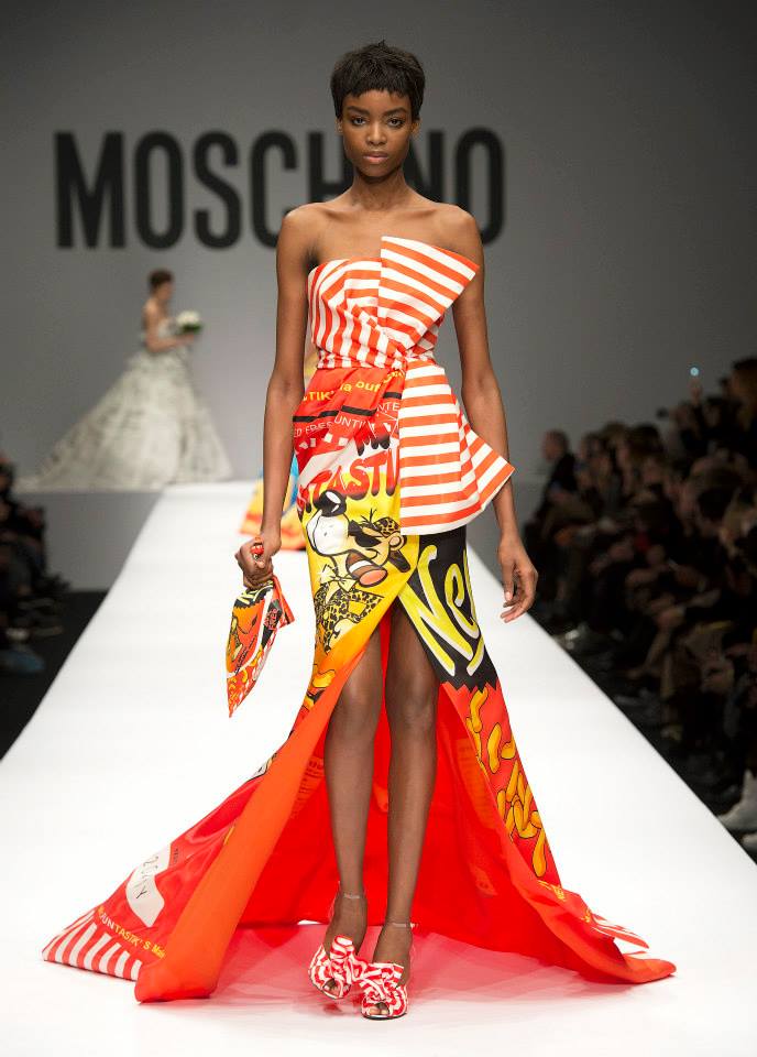 Fast fashion là từ chính xác nhất để nói về bộ sưu tập đầu tiên của Jeremy Scott cho Moschino mùa thu đông năm nay. Nhà thiết kế người Mỹ này được xem là người phù hợp nhất trong việc kế thừa và phát huy phong cách thời trang dí dỏm, sống động, đầy màu sắc và có phần trào phúng của người sáng lập Franco Moschino, sau khi người tiền nhiệm Rossella Jardini ra đi. Jeremy Scott đã lấy cảm hứng từ văn hóa pop culture và các thương hiệu fast food nổi tiếng từ quê hương nước Mỹ của ông để làm nên một trong những bộ sưu tập gây sốt nhất tại Tuần lễ Thời trang Milan năm nay.