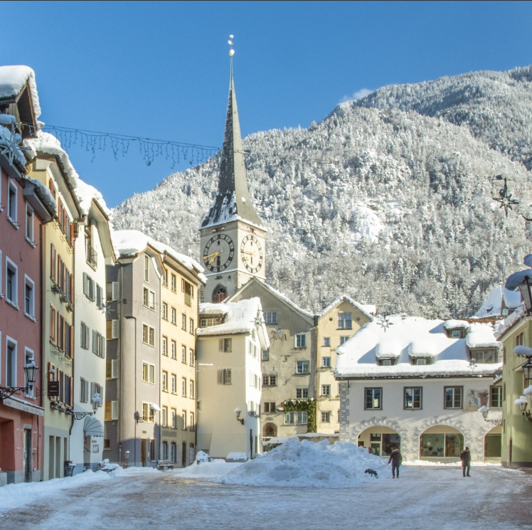 Là một “viên ngọc” quý lâu đời ít người biết, ngôi làng cổ nhất Thụy sĩ Chur là một địa điểm tuyệt đẹp vào mùa đông. Bạn sẽ như lạc vào trong bộ phim cổ khi dạo quanh những con đường lát đá ngập tràn trong tuyết trắng mà không có một bóng dáng xe hơi nào. Những bảng ghi chú màu đỏ đặt quanh thị trấn sẽ giúp bạn tìm ra các điểm đáng tham quan trong làng, bao gồm: