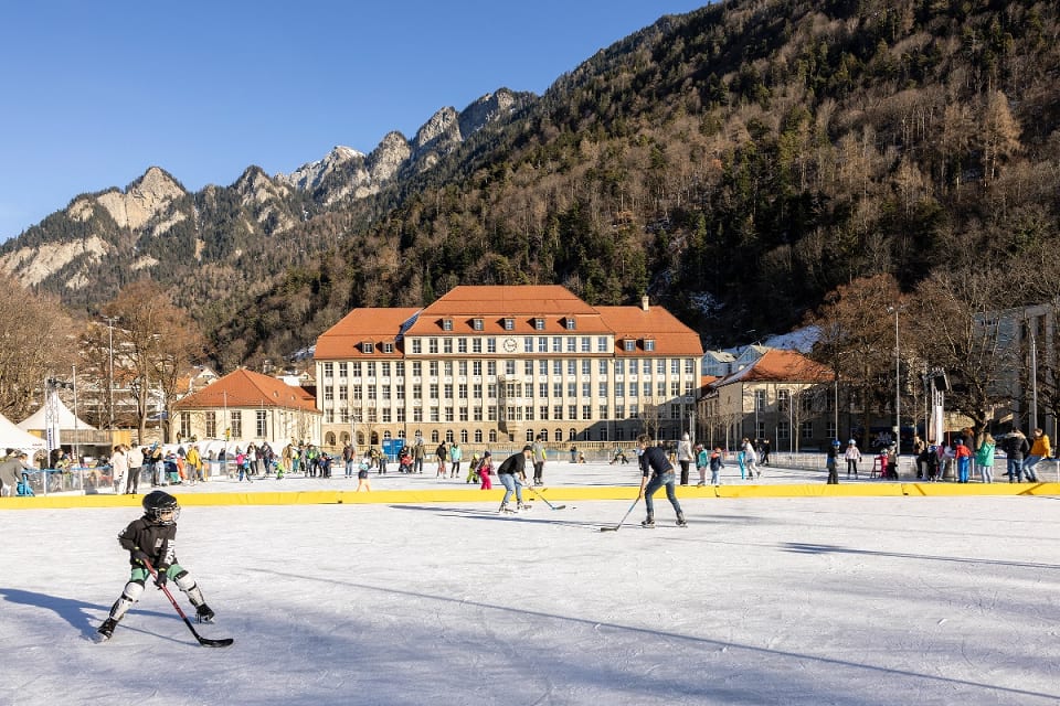 Nếu ai muốn trải nghiệm các môn thể thao mùa đông thì ngôi làng cổ nhất Thụy Sĩ là địa điểm vô cùng thích hợp. Sân băng ngoài trời Quader tọa lạc tại trung tâm thành phố, chỉ cách ga xe lửa hai phút đi bộ. Sân băng này nổi tiếng là một địa điểm lãng mạn bởi ánh đèn cùng những bản nhạc du dương. Hãy để bản thân bị mê hoặc cùng bầu không khí cổ tích bởi các tòa nhà trường học Quader hùng vĩ làm nền phía sau.