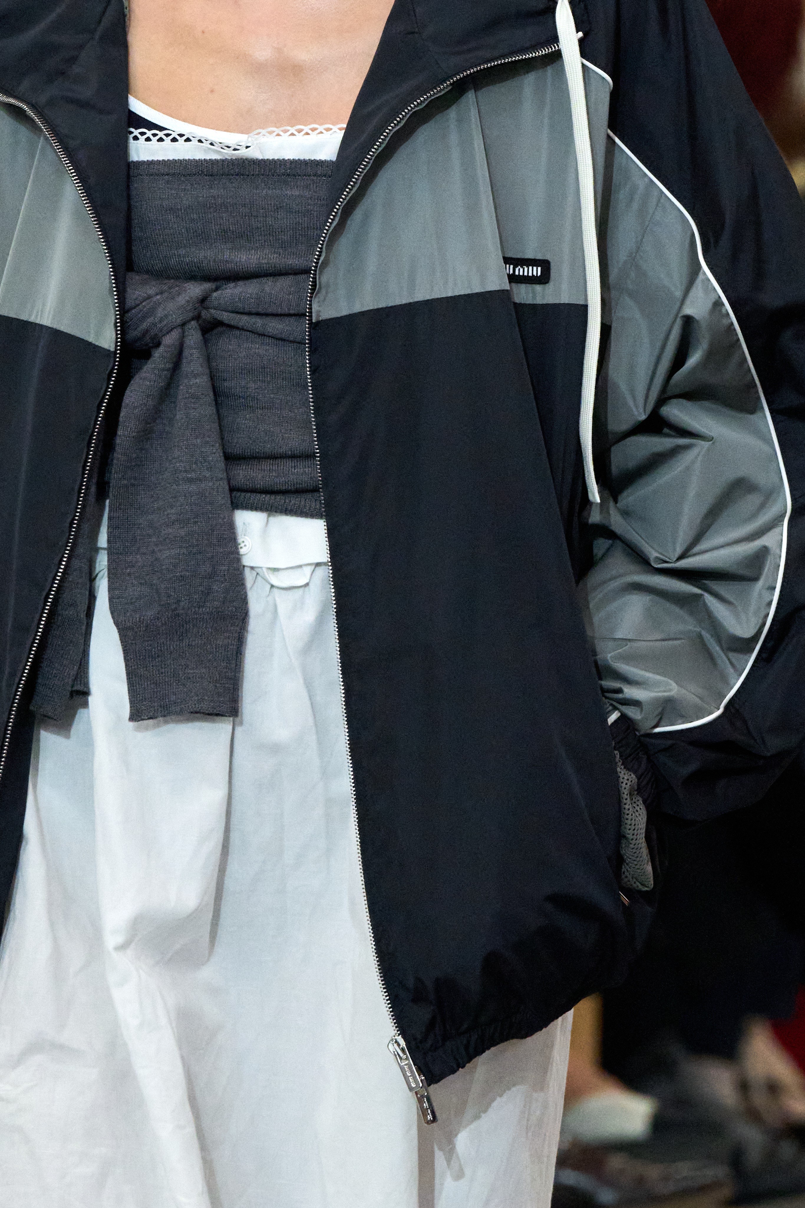 Prada ôn lại bằng những biến thể của đồng phục học sinh – một phong cách yêu thích của Miuccia Prada đã được bà mang lên sàn diễn nhiều mùa mốt liên tiếp. Những chiếc váy yếm cotton phối cùng với áo len quấn quanh hông, một hình ảnh quá quen thuộc trên sân trường trong giờ ra chơi. Đồng phục thể dục hay quần đùi mặc cùng áo lót và áo khoác thể thao, xếp lớp hỗn loạn nhiều phong cách khác nhau cũng chính là tinh thần sáng tạo không giới hạn của tuổi học trò.