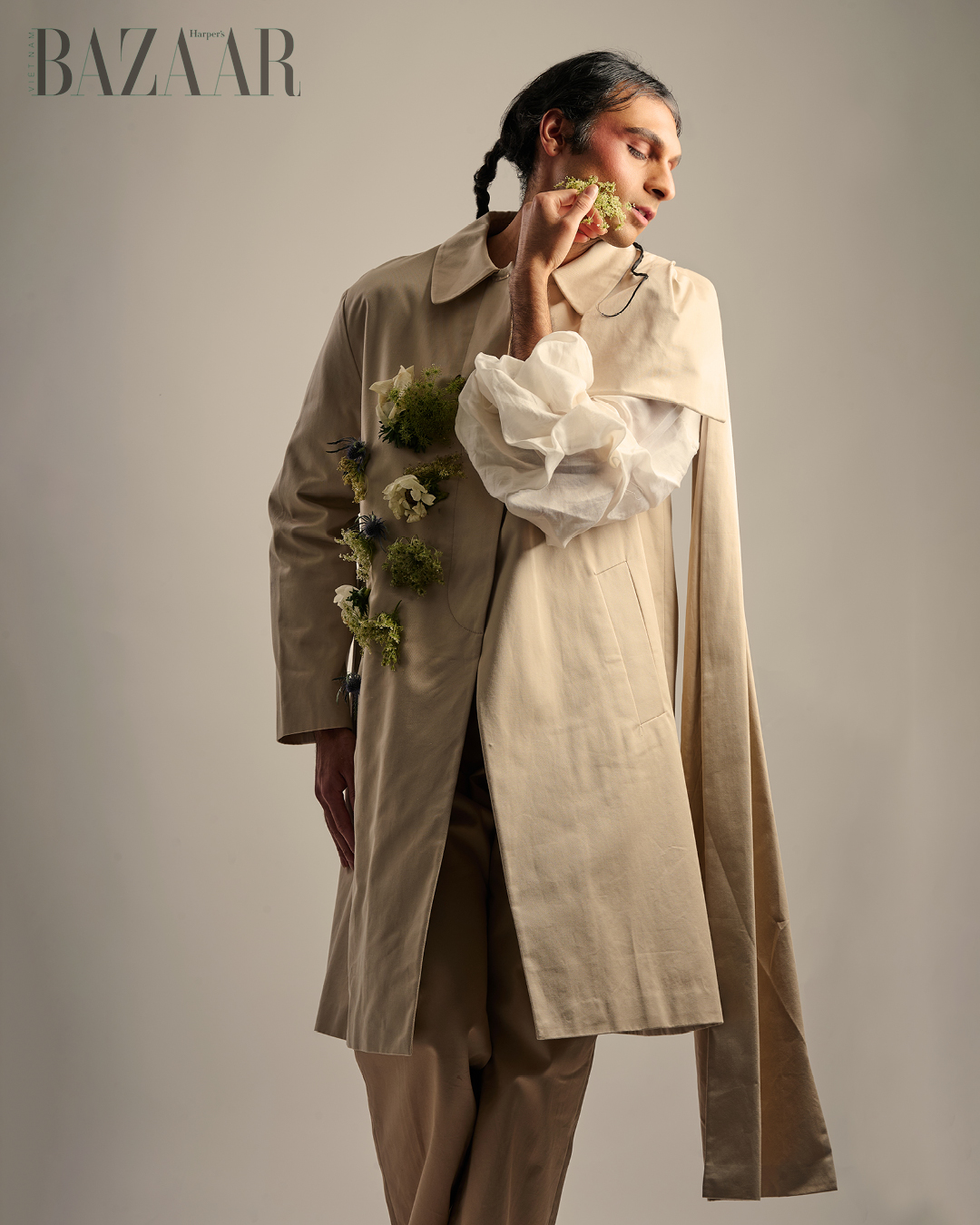 Myth in Bloom là một câu chuyện bằng hình giàu tính biểu cảm. Bộ ảnh đặt câu hỏi về những khuôn khổ cứng nhắc của xã hội hiện đại và gợi nhắc con người quay trở về thiên nhiên, nơi từng được xem là thiêng liêng. Nhân vật xuất hiện trong không gian giao thoa, nơi dấu vết của công nghiệp dần tan biến và thiên nhiên lấy lại vị trí vốn có. Ở đó, hình ảnh cơ thể mang ý nghĩa của sự thay đổi, tái sinh và buông bỏ, như một chuyển động không ngừng giữa thể xác và tinh thần. Trong một thế giới ngày càng nhân tạo, bộ ảnh nhắc chúng ta nhớ rằng con người và thiên nhiên luôn có mối liên kết chặt chẽ với nhau về mặt bản chất.