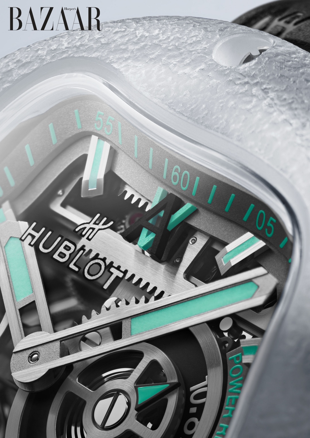 Siêu phẩm thời gian này lấy cảm hứng từ tinh thần vận động của nước, các hình dạng hữu cơ và tính trong suốt. Thiết kế là sự kết hợp hoàn hảo giữa triết lý “Art of Fusion” (nghệ thuật của sự hòa quyện) ở Hublot và tầm nhìn khảo cổ học giả tưởng độc đáo của Arsham, nơi anh tái hiện các vật thể đương đại như những hiện vật cổ đại, xóa nhòa ranh giới giữa quá khứ, hiện tại và tương lai.