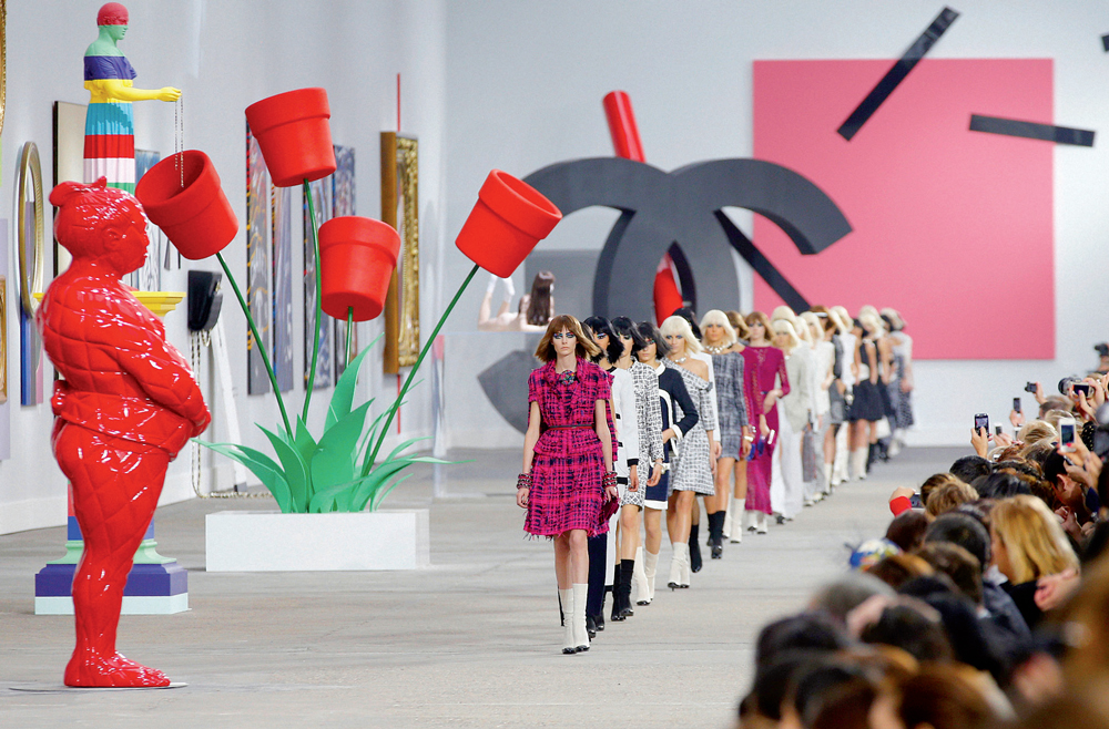 Người mẫu trình diễn trong giai điệu Picasso Baby của Jay Z giữa 75 tác phẩm điêu khắc và tranh do Lagerfeld thai nghén từ những biểu tượng huyền thoại như ngọc trai, chai nước hoa, hoa camellia, logo hai chữ C…