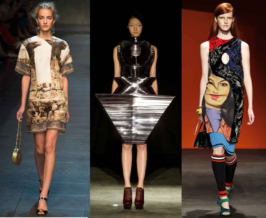 Từ trái sang: thiết kế của Dolce & Gabbana, Iris Van Herpen, Prada