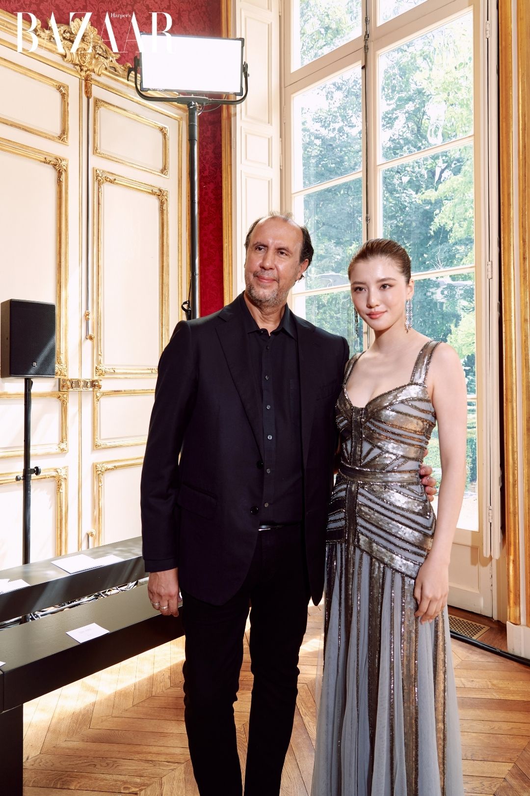 Ngô Thiên Ngữ bên cạnh nhà thiết kế Tony Ward. Ảnh: Weibo