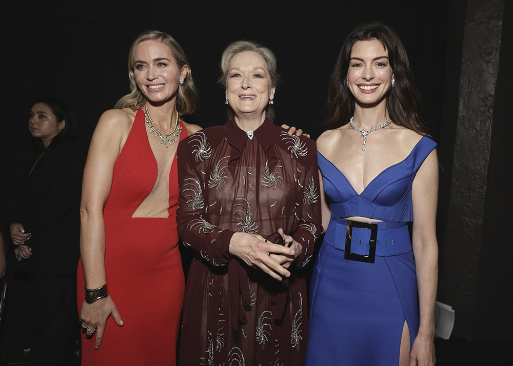 Emily Blunt, Anne Hathaway và Meryl Streep, bộ ba bước ra từ The Devil Wears Prada, trên sân khấu SAG Awards 2024 .Ảnh: Getty Images