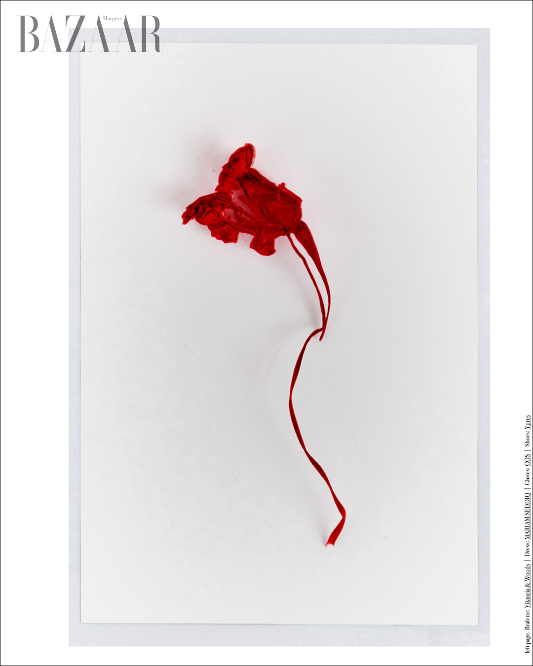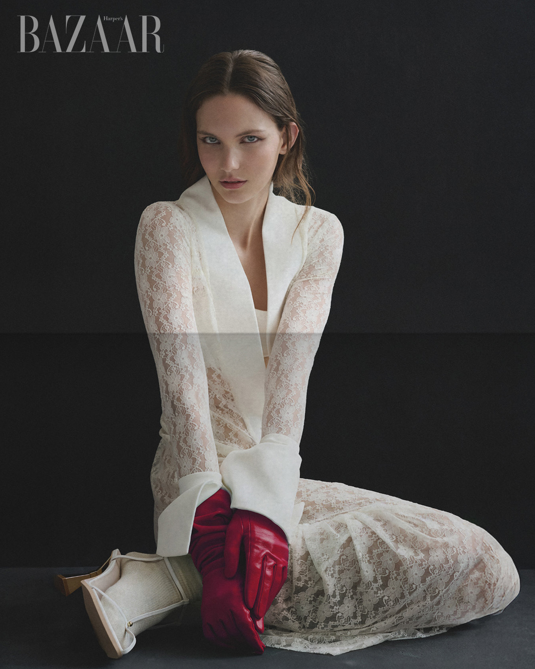 Bralette, Viktoria & Woods. Dress, Mariam Seddiq. Gloves, Cos. Shoes, Ypres.