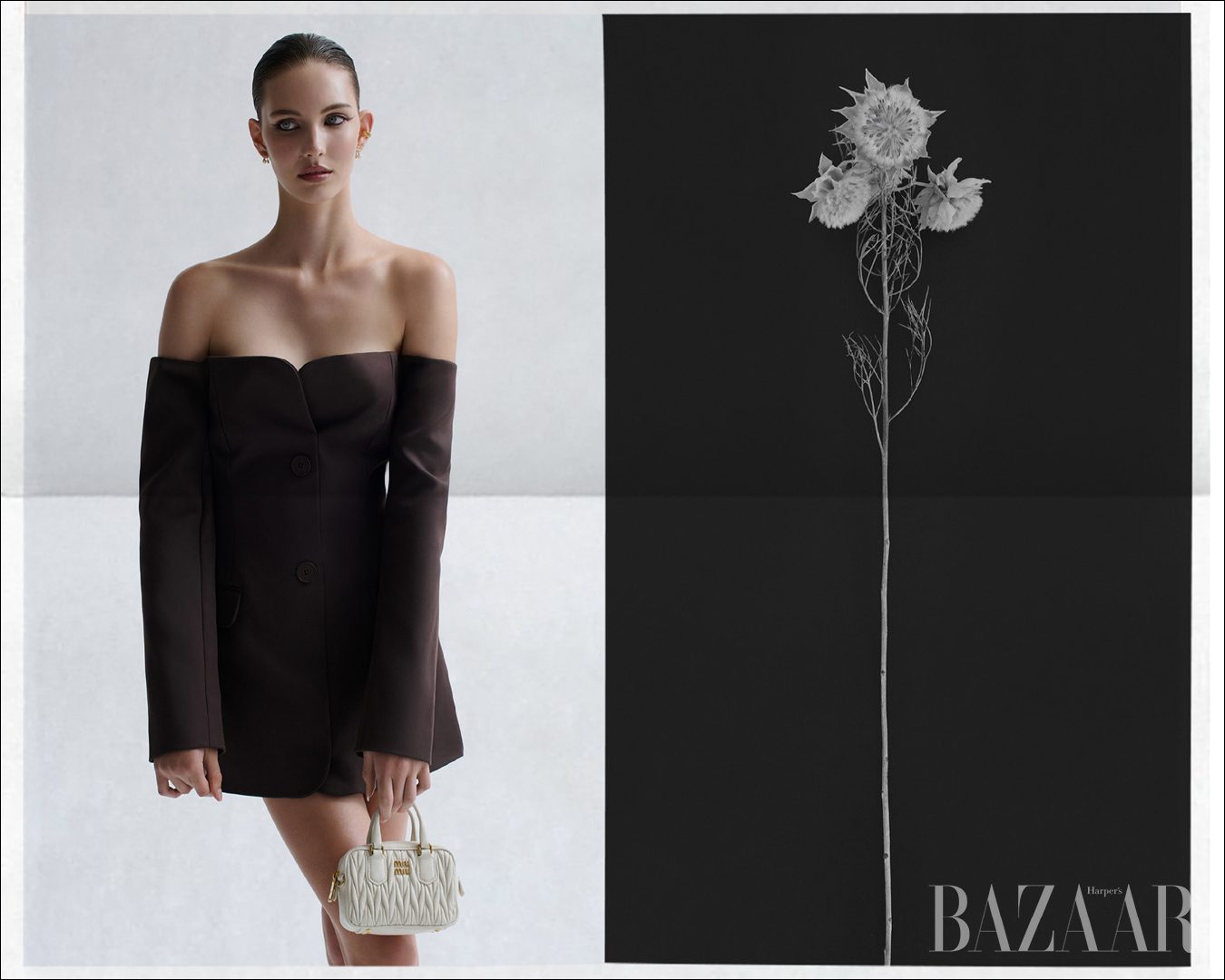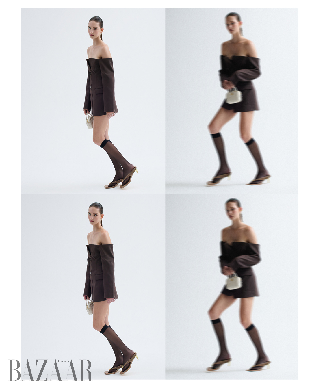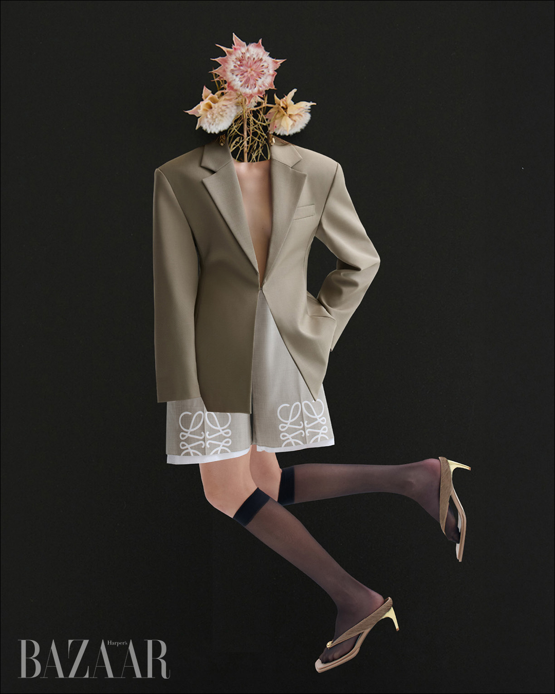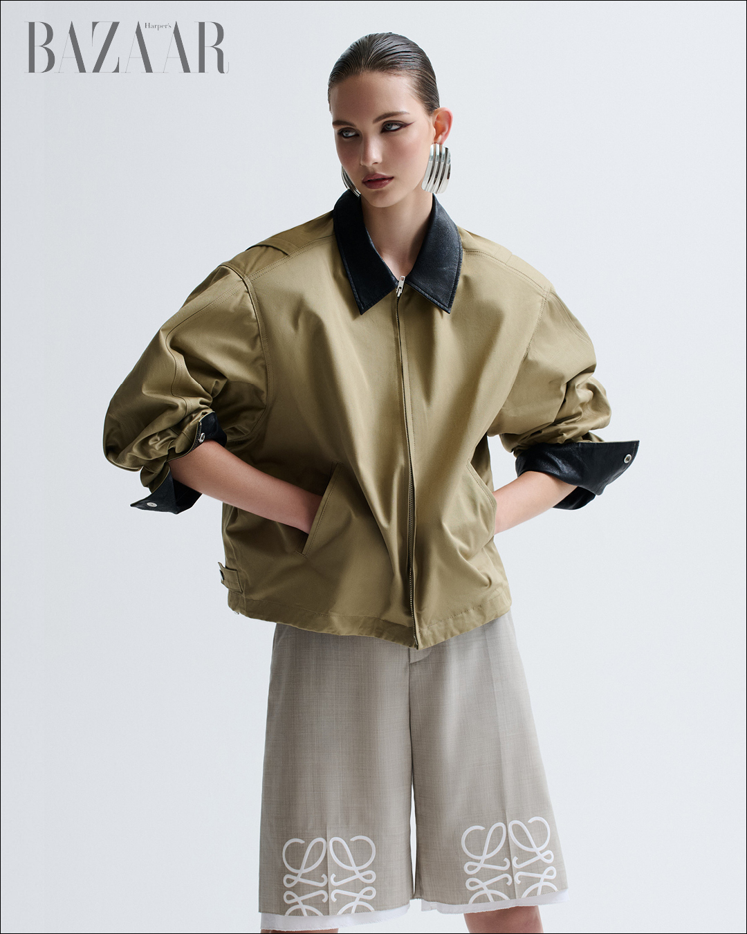 Jacket, Le Element. Shorts, Loewe. Earrings, Anna Rossi.