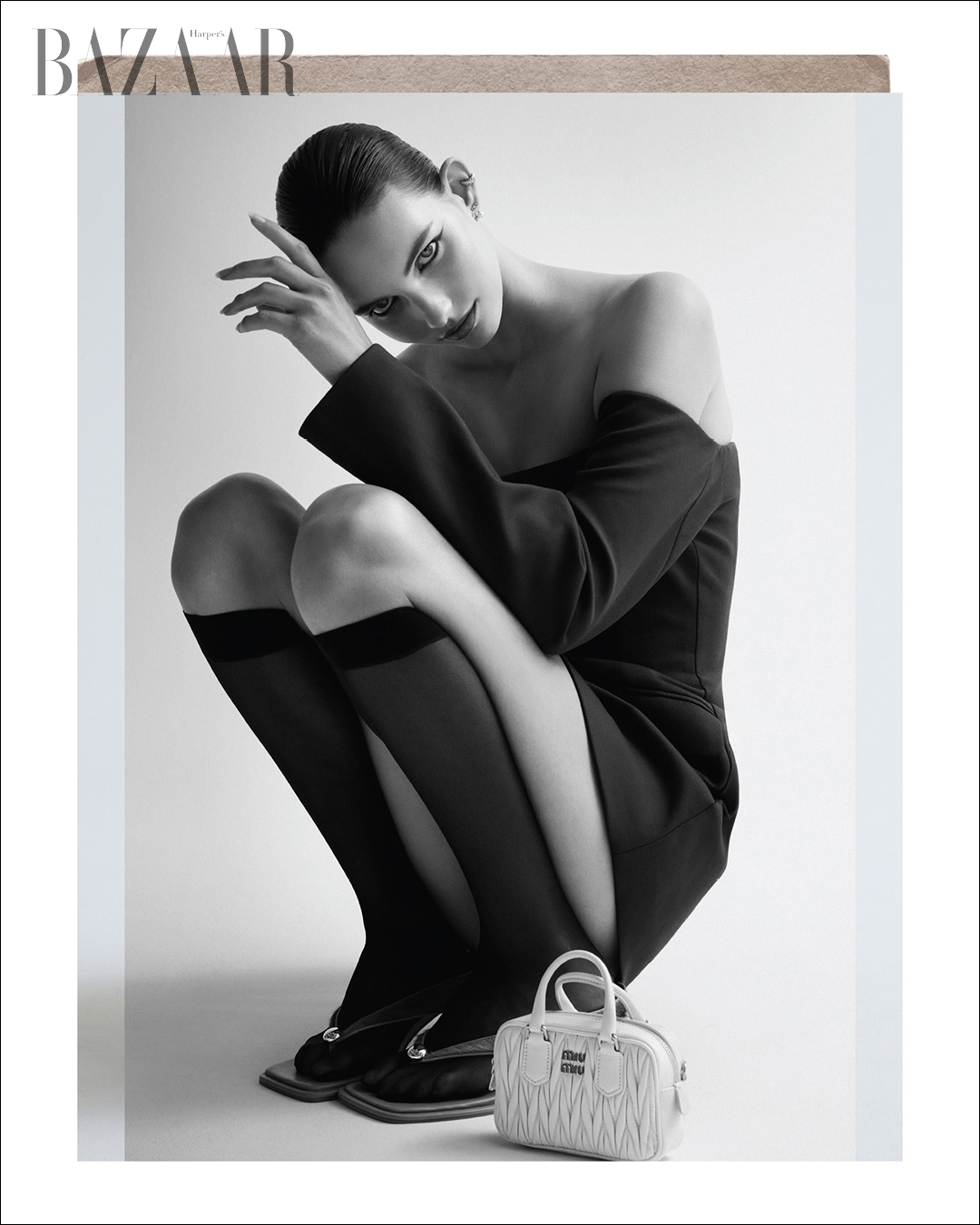 Dress, Sir. Earrings, Dior. Ear cuff, FinerRings. Socks, Wolford. Bag, Miu Miu. Shoes, Ypres.