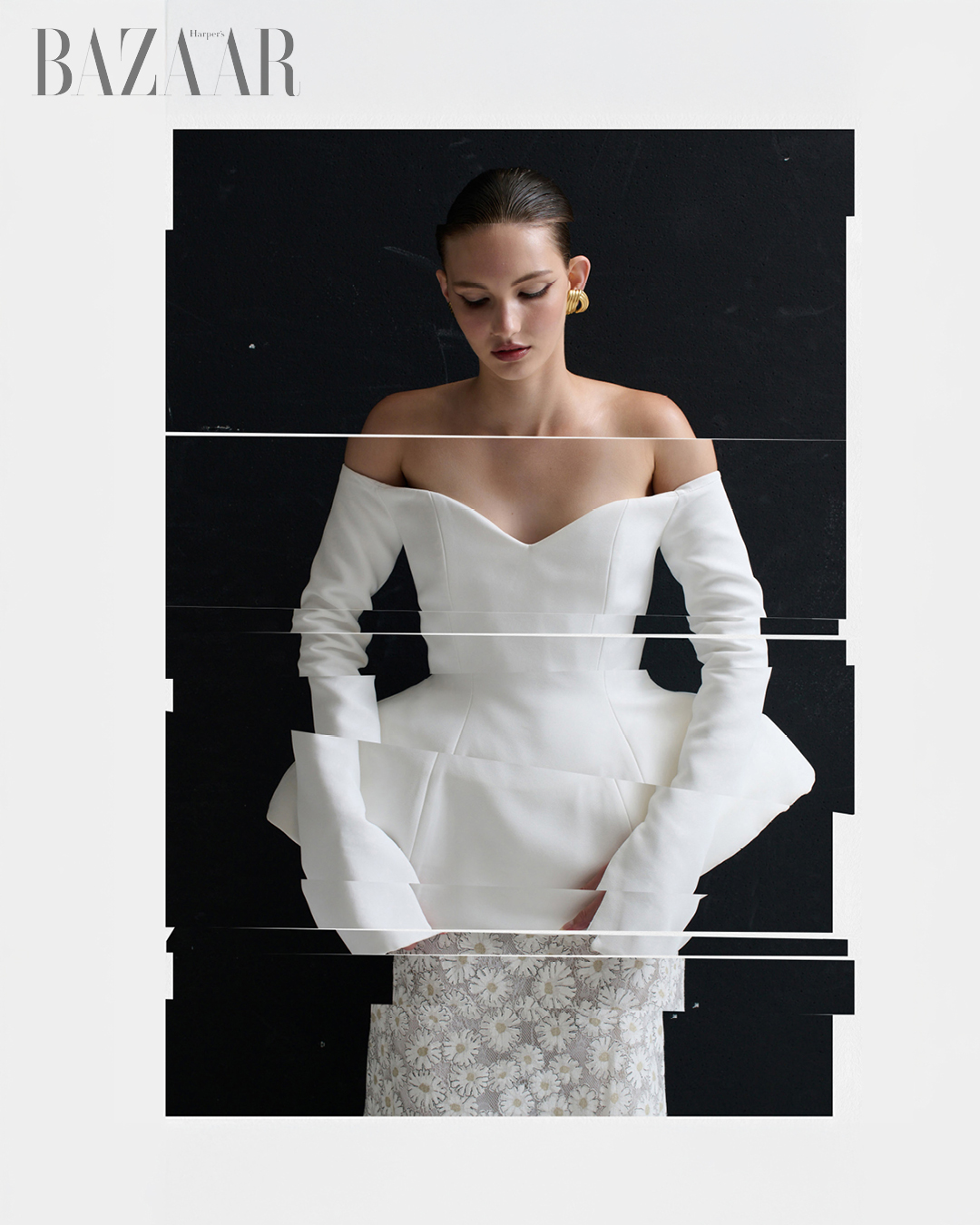 Top, Mariam Seddiq. Earrings, Anna Rossi. Skirt, Scanlan Theodore.
