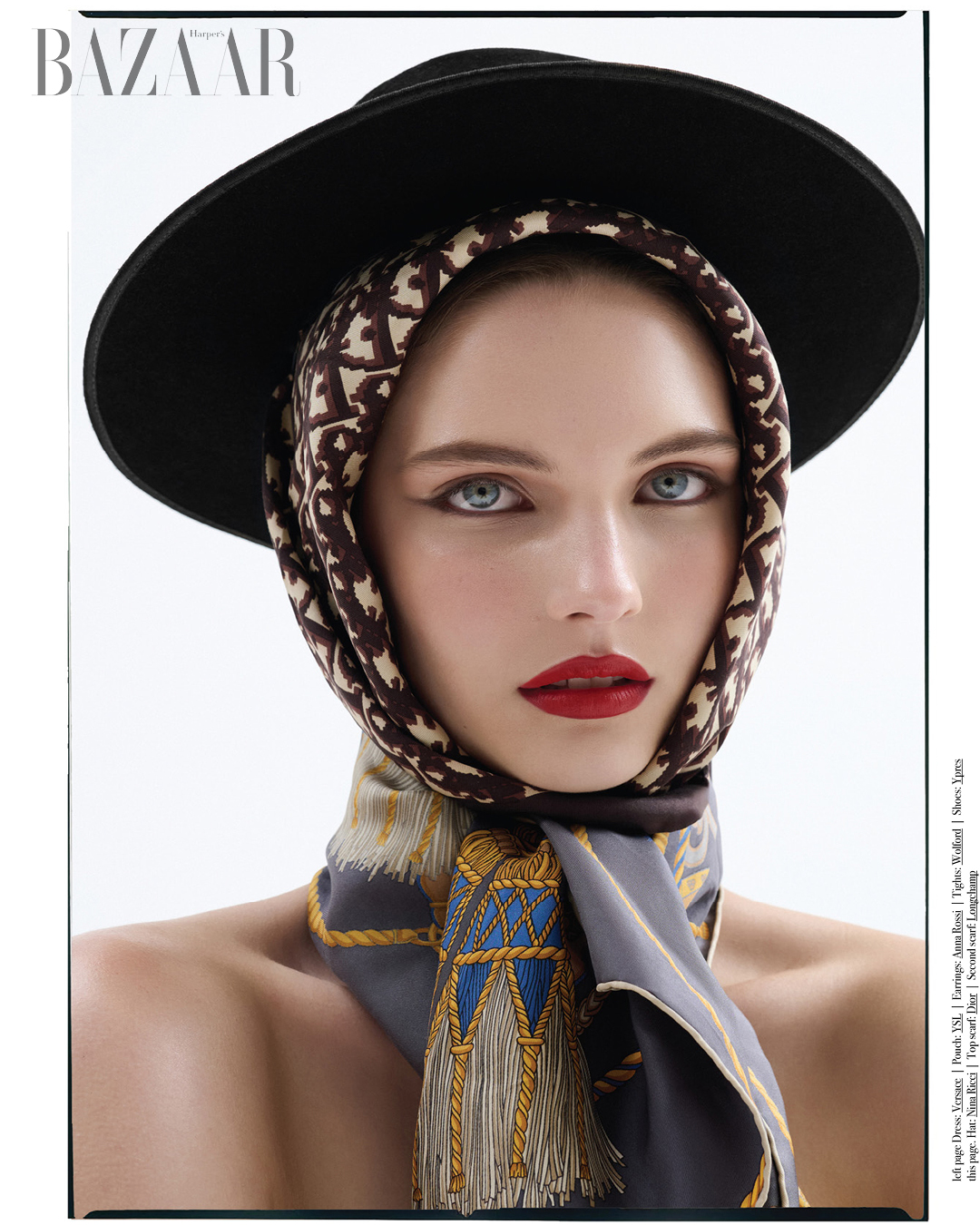 Hat, Nina Ricci. Top scarf, Dior. Second scarf, Longchamp.