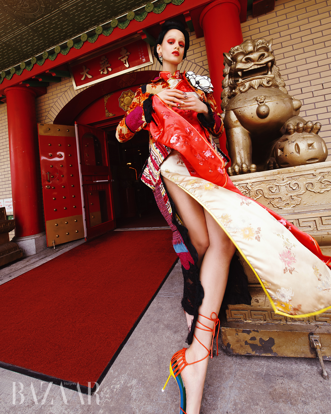 Giữa sắc màu rực rỡ của khu phố Hoa kiều, người mẫu Melanie Perez hóa thân trong những thiết kế đậm cảm hứng Á Đông – gấm đỏ, họa tiết truyền thống và đường cắt hiện đại. Ống kính Tatiana Luna khắc họa tinh thần giao thoa văn hóa: táo bạo, duy mỹ và đậm hơi thở đường phố, nơi thời trang gặp ánh đèn neon và ký ức Trung Hoa.