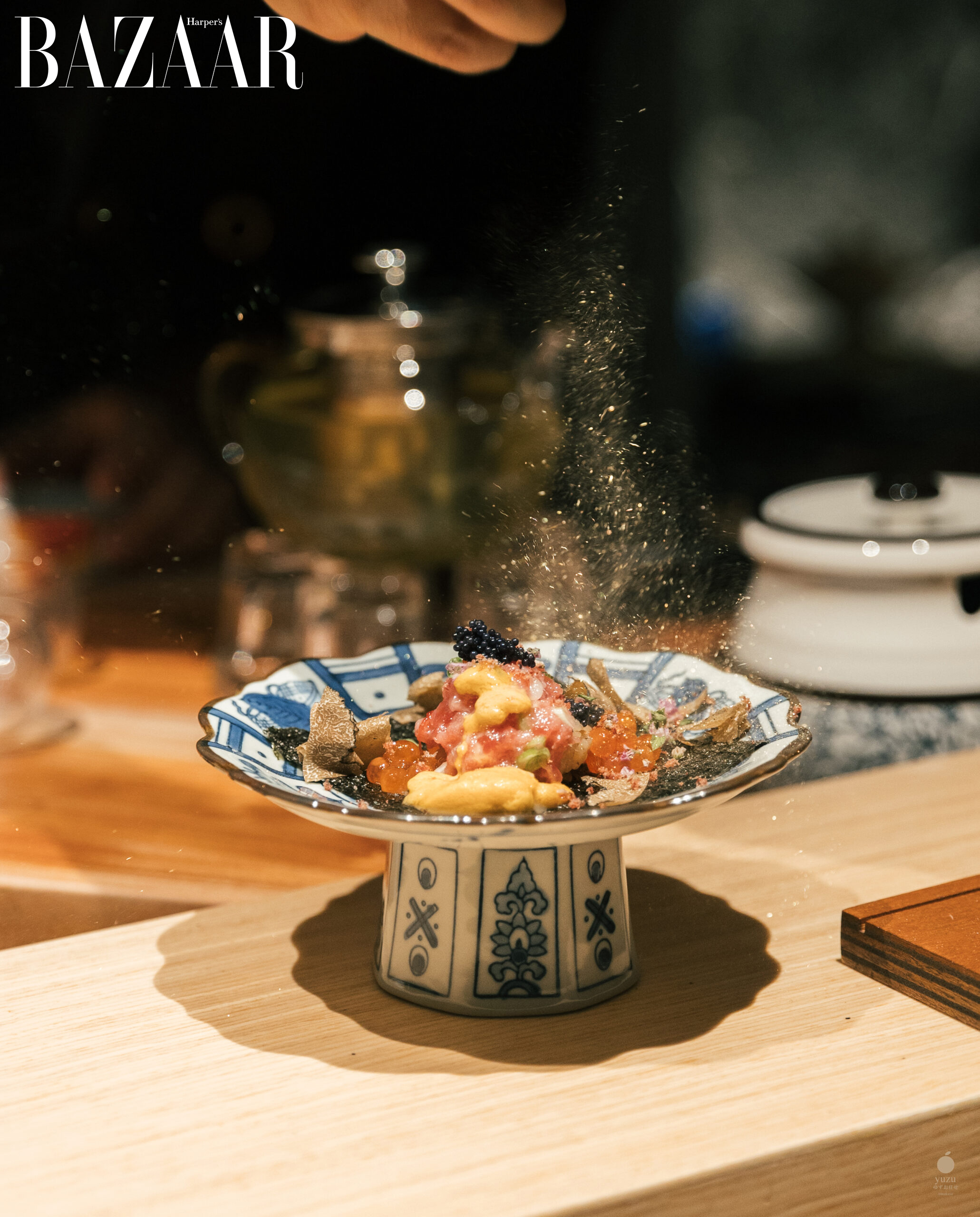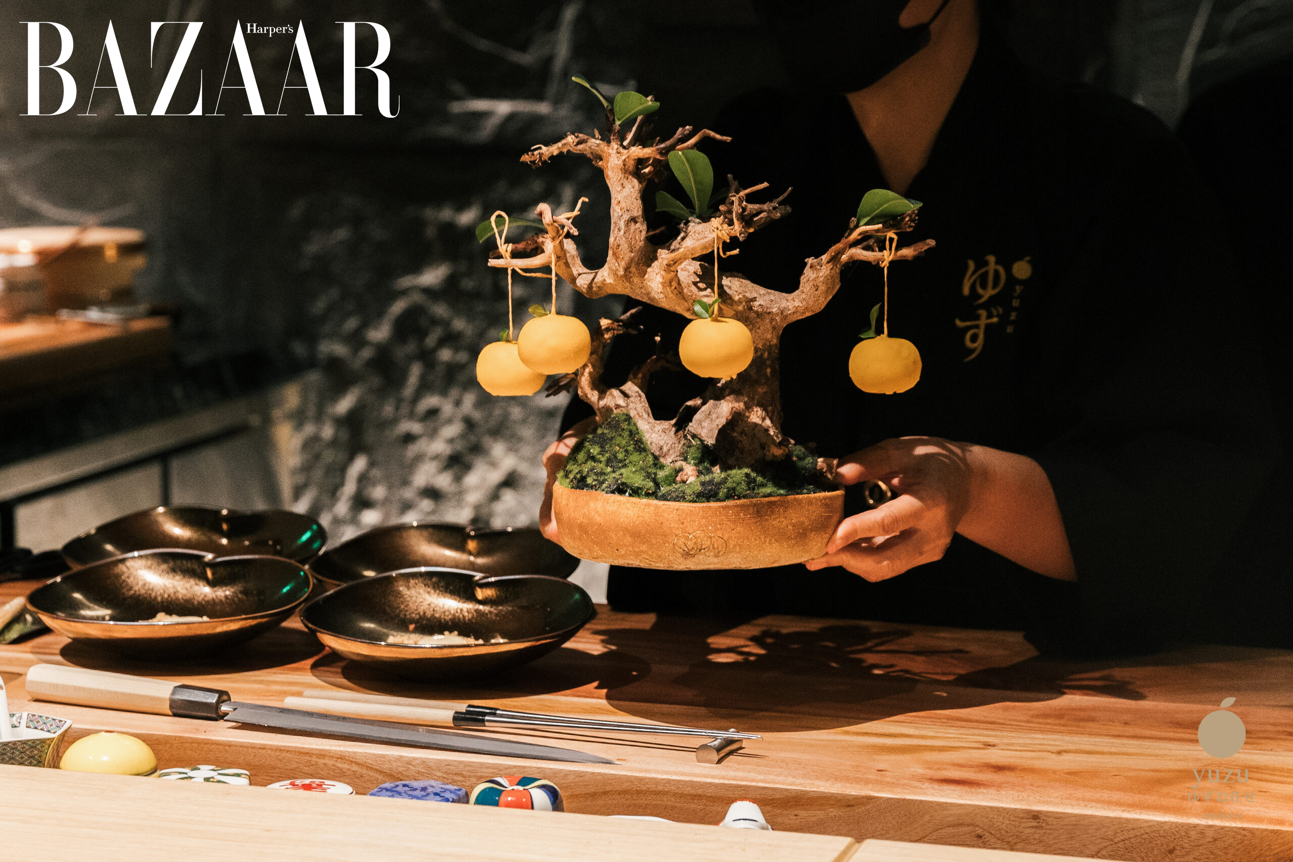 Bên cạnh việc tôn trọng nguyên liệu, Yuzu còn tạo ấn tượng với khách qua các màn trình diễn sáng tạo và sự sắp xếp thông minh của các món ăn. Ví dụ như món Hokkaido Hotate được trình bày như một quả cầu pha lê với bong bóng khói, hoặc miếng nigiri kết hợp nhiều hương vị đặc sắc như Bò Wagyu Nhật, gan ngỗng Pháp, Truffle Ý và hành phi Việt Nam.