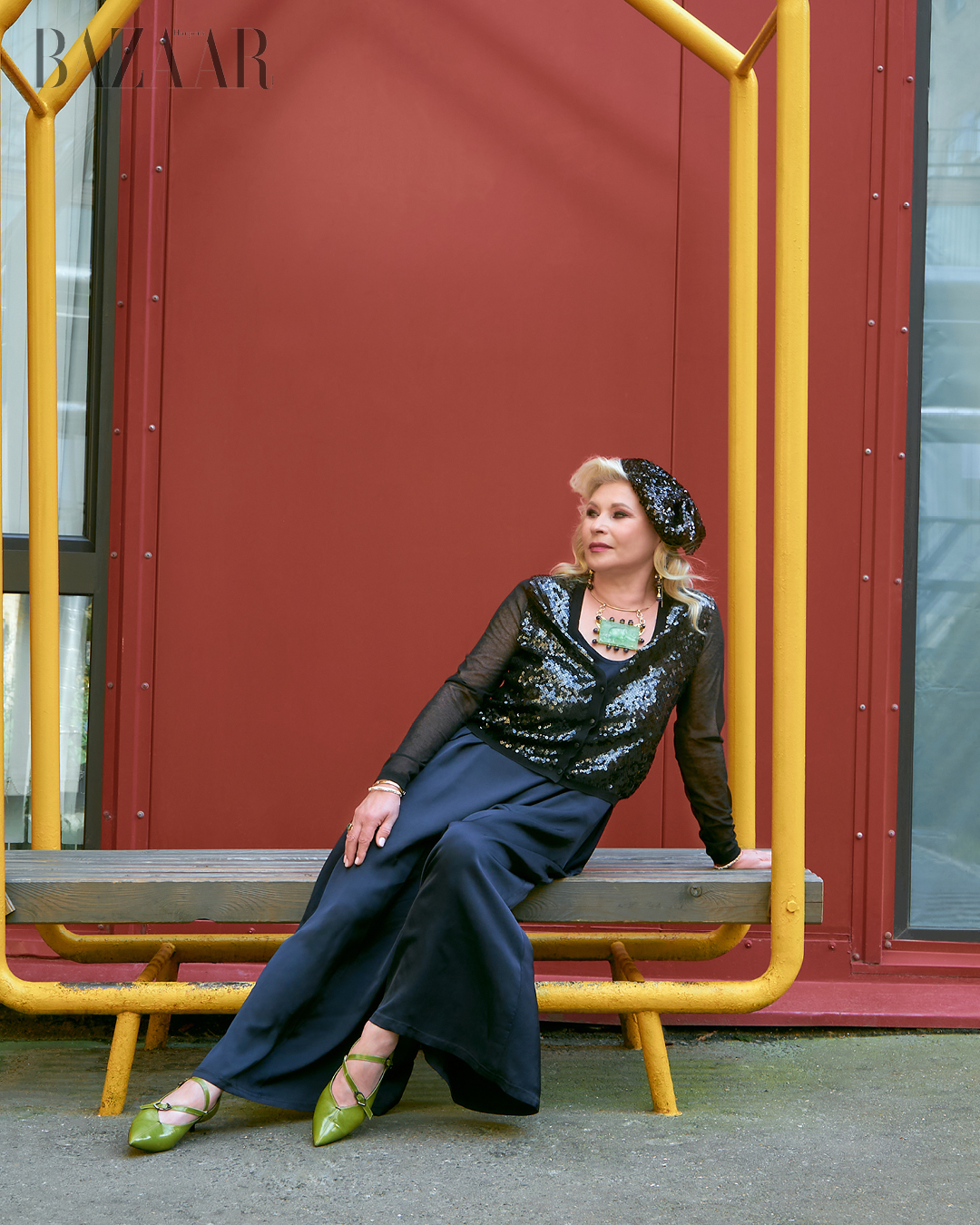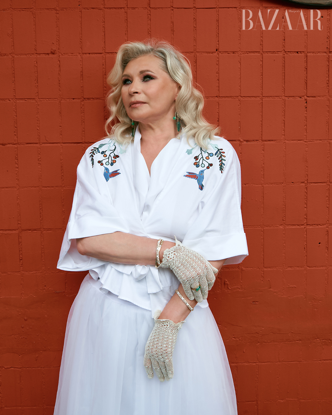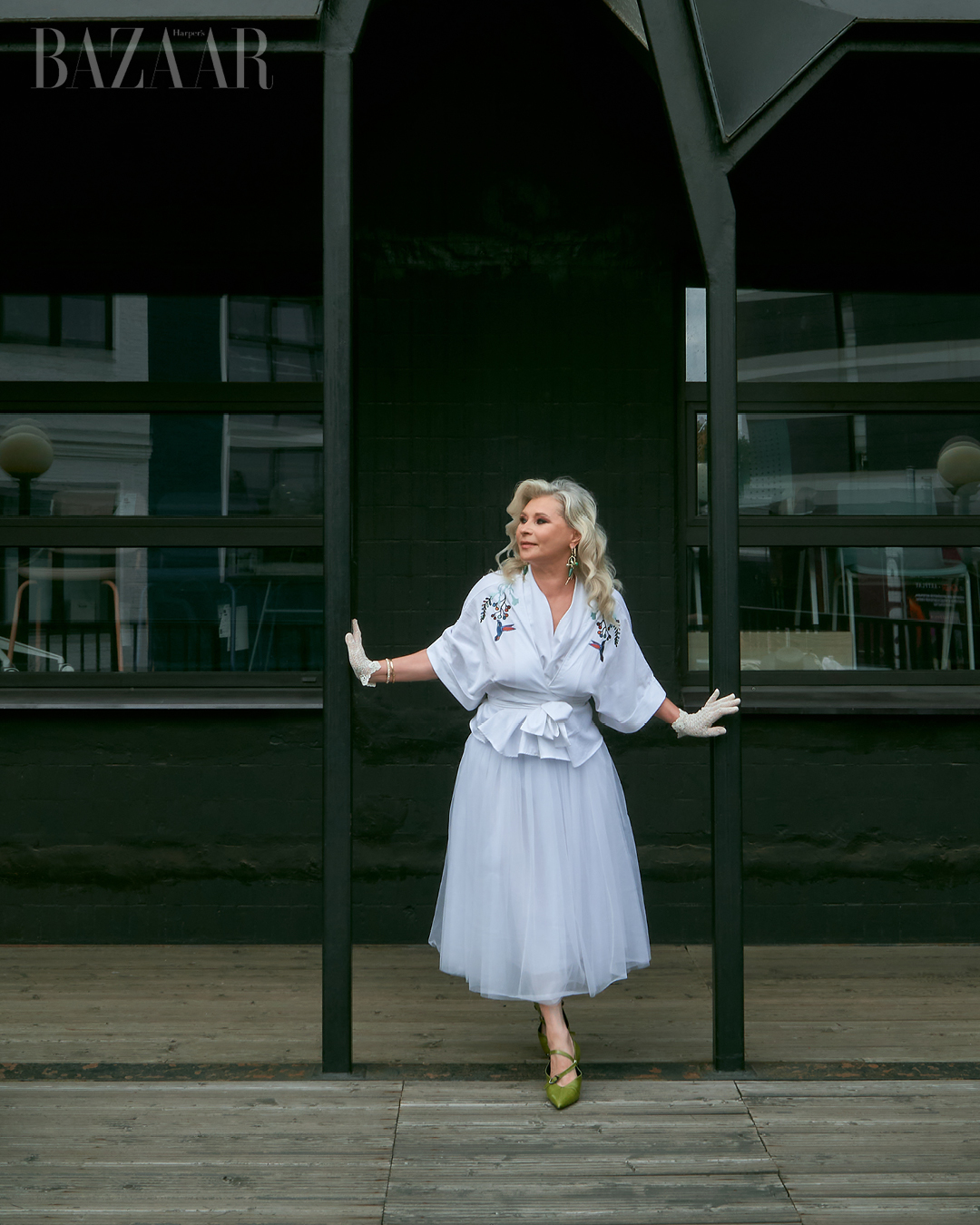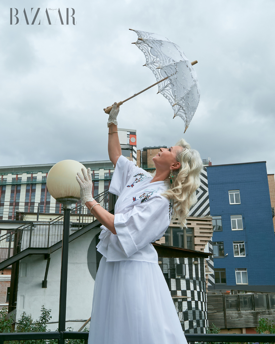 Ảnh: Stasya Molchanova. Người mẫu tuổi trung niên: Olga Breedveld. Áo: Tallulah and Hope. Váy khiêu vũ. Giày: Poeve. Bông tai: Patricia Bruni. Vòng tay: Melrosia. Găng tay và dù của stylist.